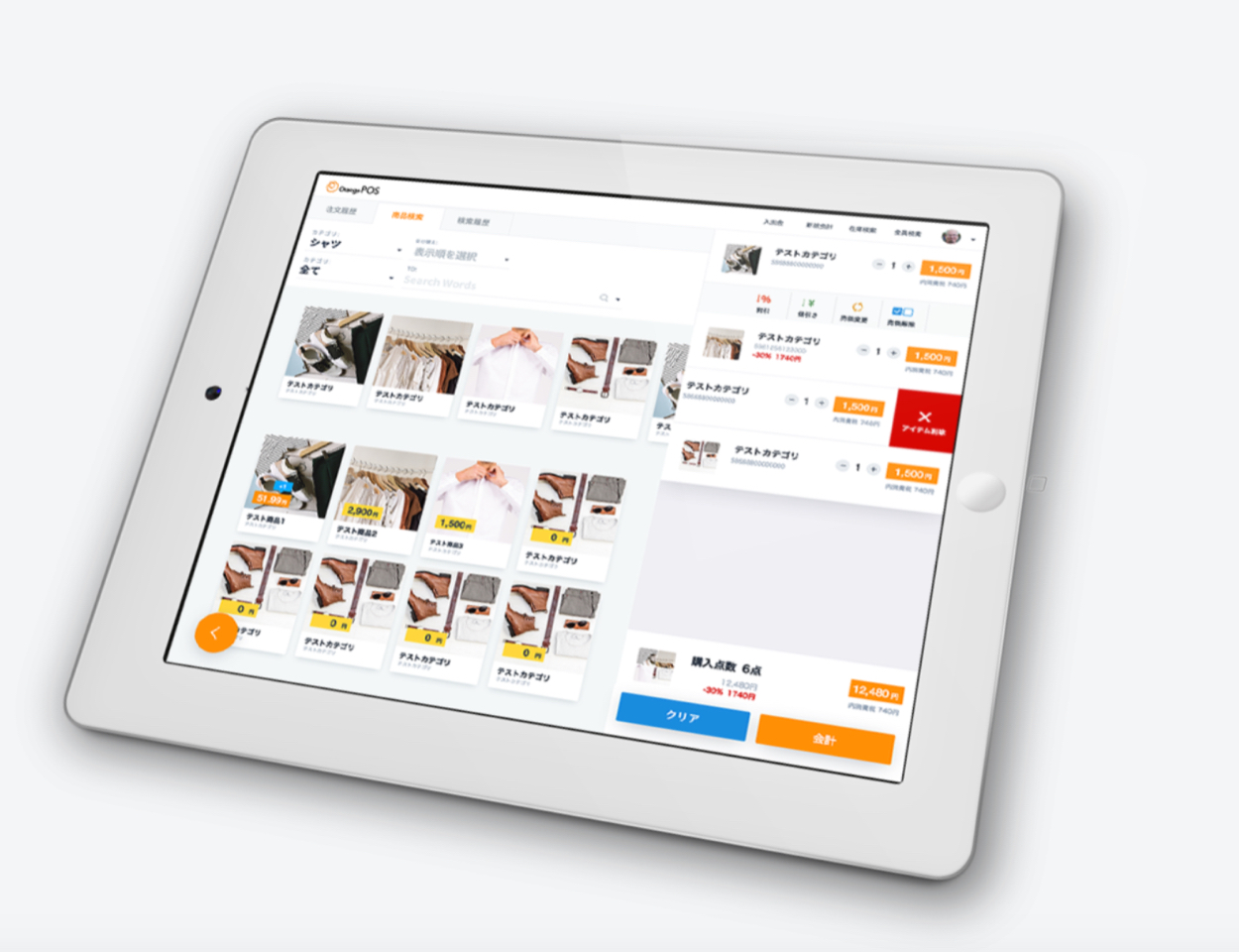 カートリスト(右側のリスト)はコンテンツのタップでメニューがアコーディオンで表示、スワイプで削除。商品選択(左側のコンテンツ)は左下の戻るボタンを付けることでモバイルアプリの操作感を与える。