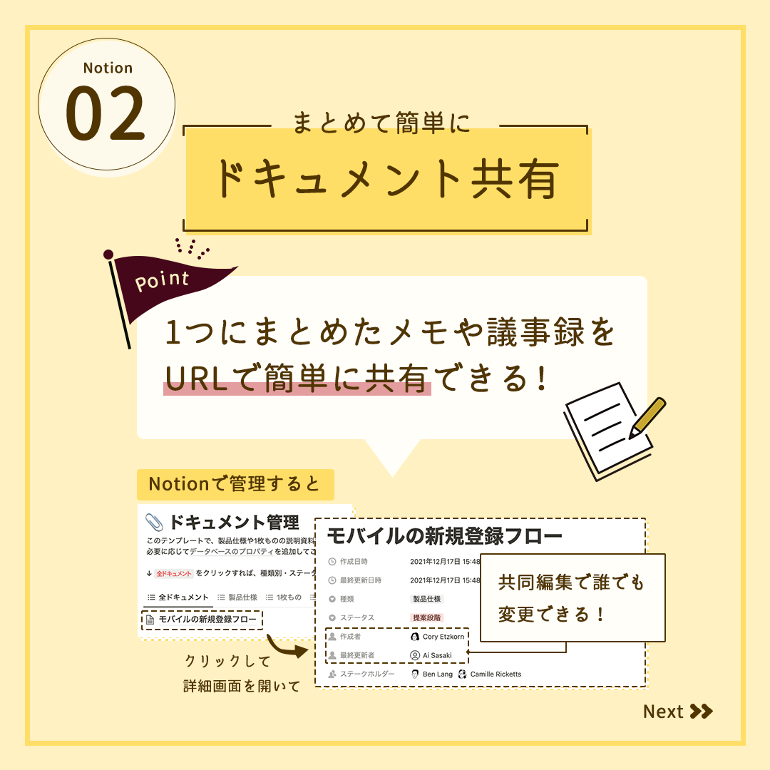 - 必要な要素のボリュームがあり、加えてNotionの画面キャプチャをまとめることが求められていたため、必要な要素を端的な表現にアレンジして文量を減らしました。
