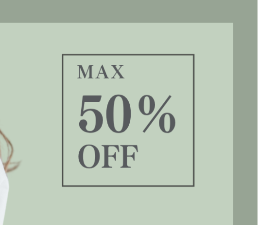 ・MAX50%OFFを強調したかったため、四角で囲い50%だけ大きくし目立たせました。