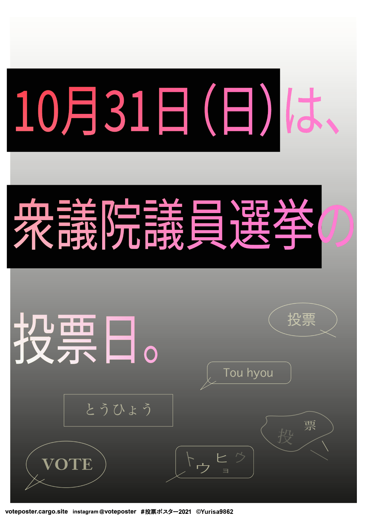 「#投票ポスター2021(https://voteposter.cargo.site/)」の企画趣旨に賛同し、2021年10月31日(日)に行われた衆議院議員選挙の投票を呼びかけるポスターを制作。