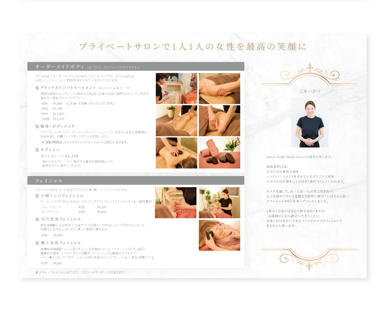 ボディメイクサロンtetela様 チラシデザイン