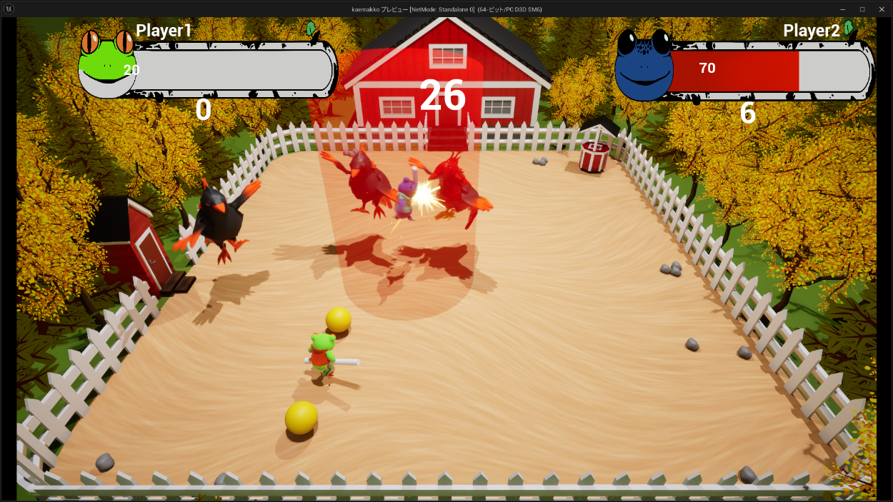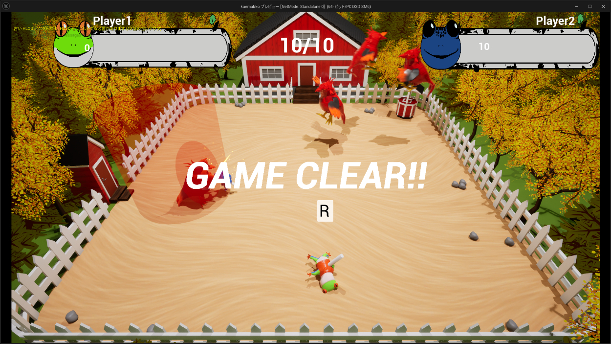 海外交流で約1か月半で制作した3Dのアクションゲーム!家の敷地を荒らすカラス達を物理攻撃と魔法攻撃を駆使して倒しまくって平和を取り戻そう!仲間と共にカラスを蹴散らす協力、ライバルと倒したカラスを競い合う対戦の2つのモードがあるぞ!果たしてカエル達のの平穏な日常は取り戻せるのか...!?