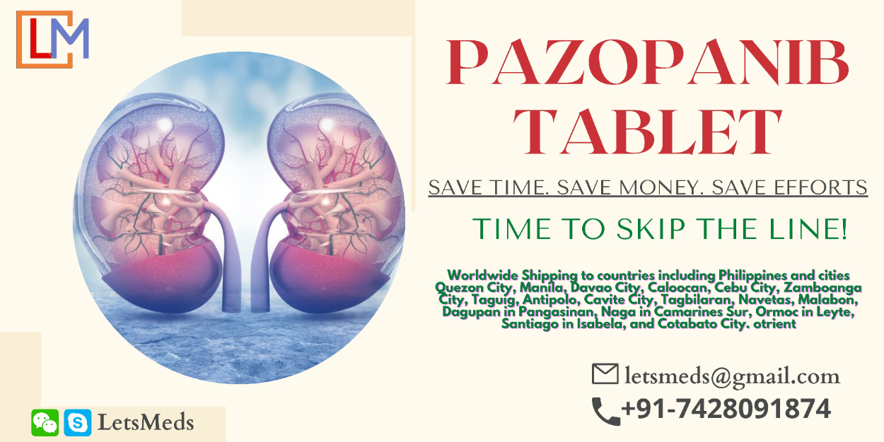 Looking for a high-quality Generic Pazopanib Tablets Indian Brands which includes Pazoci tablet, Pazonat Tablet at an unbeatable price? Look no further than LetsMeds! Our generic Pazopanib Tablets offer all the essential features of their more expensive pairs, without the hefty pricetag. Don 't be fooled by knockoffs - trust in our authentic products and get your tablet delivered to you quickly and securely with worldwide shipping options available from +91-7428091874. LetsMeds carries Indian Pazopanib Tablet in dosages of 200 mg and 400 mg. With this unique deal, you may save up to 70% on all orders of Pazopanib Tablets Cost Philippines. LetsMeds specialises in delivering quality affordable medication to Pilipinas in Makati, Quezon City, Manila, Davao City, Caloocan, Cebu City, Zamboanga City, Taguig, Antipolo, Cavite City, Tagbilaran, Navotas, Malabon, Dagupan sa Pangasinan, Naga sa Camarines Sur, Ormo.