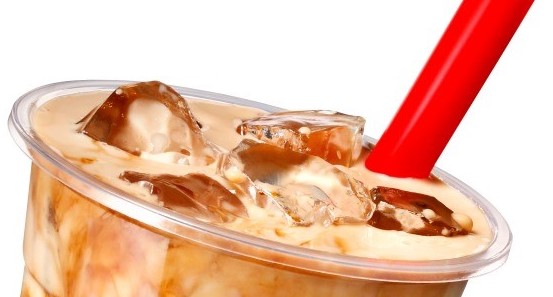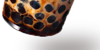 タピオカの画像のストローが赤で、左のテキストの「new」の色も赤です。新商品の告知で目立たせたい「new」にアクセントカラーが使用されています。