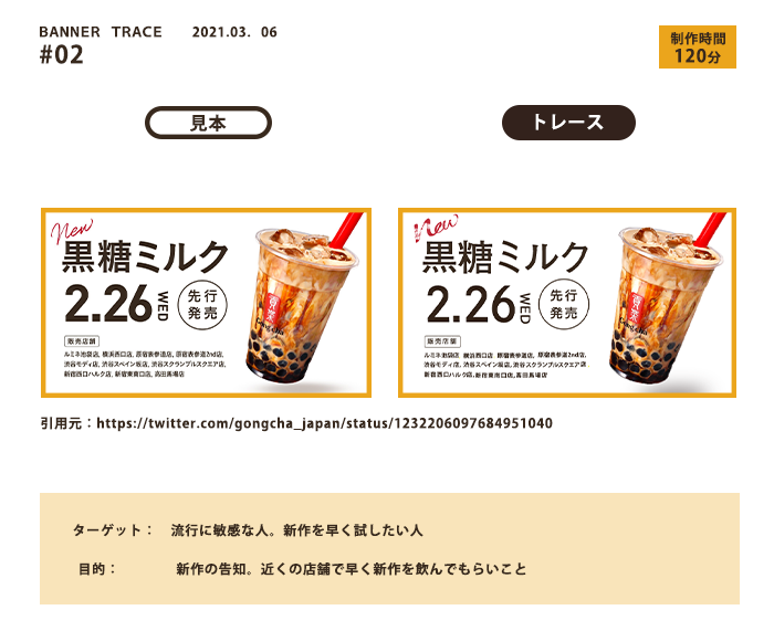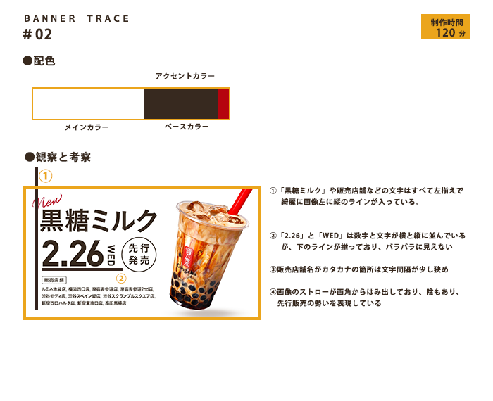SHElikes MULTI CREATOR PROJECTの課題で、バナートレースに取組みました。バナーの目的・ターゲット・配色・観察と分析の結果をまとめました。(制作時間:トレース160分 / まとめ90分)