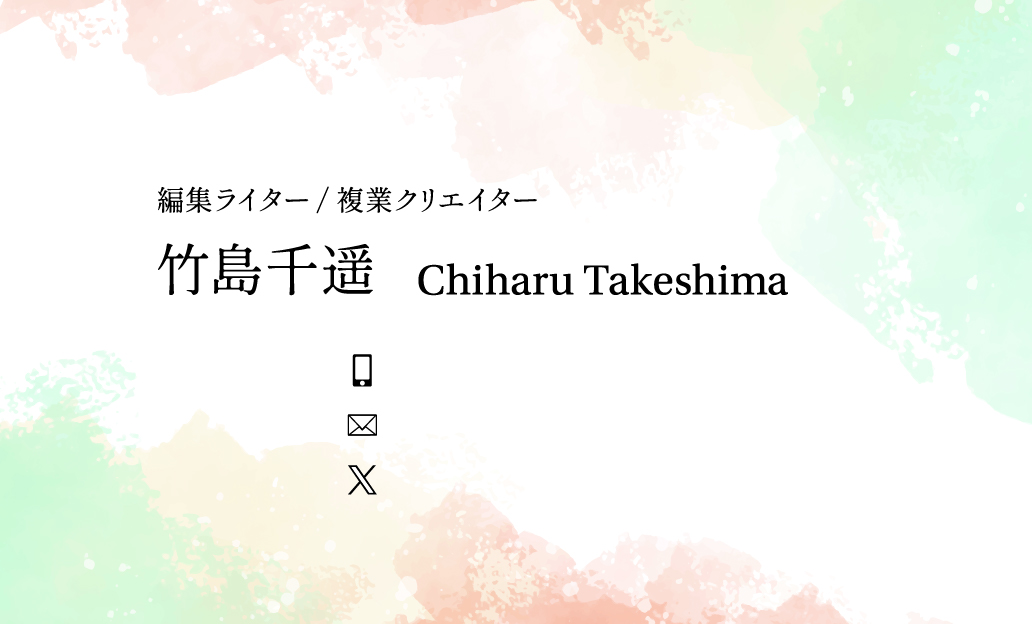 自身の強みである「多才、一貫して仕事を任せられる」というイメージを伝えるため、肩書を列挙。toB向けの仕事がメインなので、女性らしさは残しつつも知的で信頼できるデザインを心がけた。