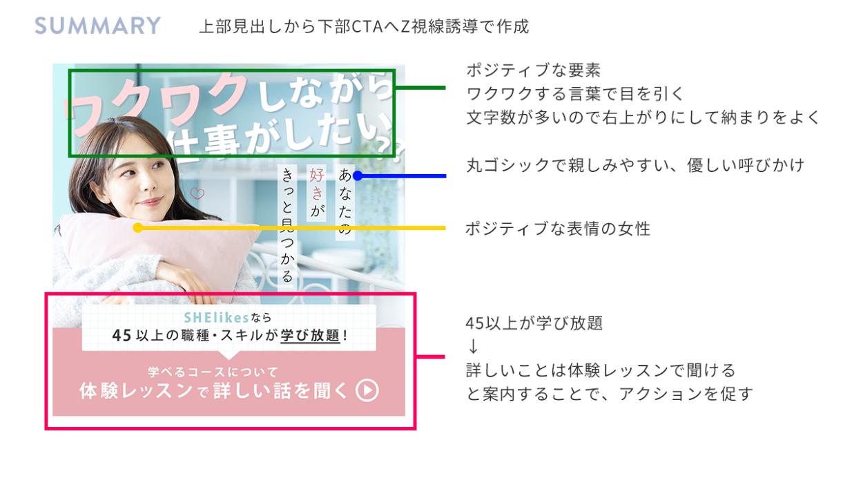 - 可読性優先、CTAの”学べるコースについて”にかかるように配置