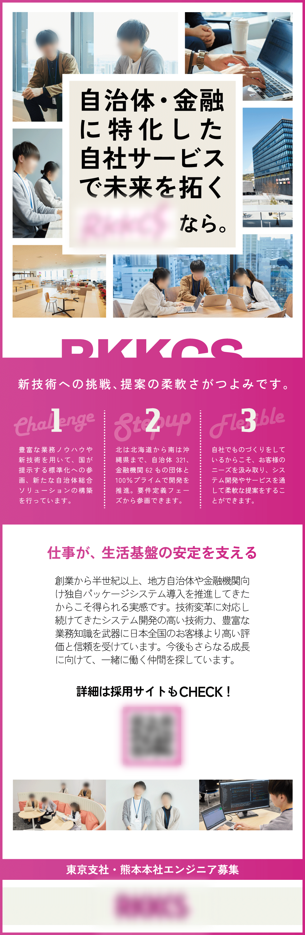 給与・福利厚生条件や仕事内容などの詳細情報を確認する前に遷移するLPバナー。掲載企業と求人ポジションに応じた伝えたいメッセージを踏まえたビジュアル・企画を踏まえて作成するバナーです。 【対象企業・職種】自治体・金融機関向けの自社パッケージを展開するIT企業のエンジニア募集
