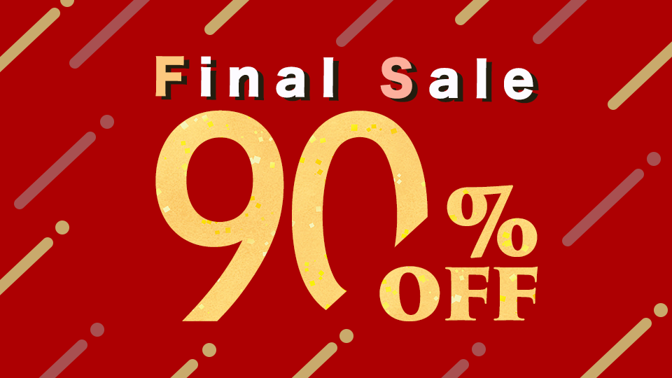 ・「90%OFF」の要素の視認性を意識し、ジャンプ率を大きくして配置。また、特別感を表現するために、金箔のテクスチャーを重ねた。