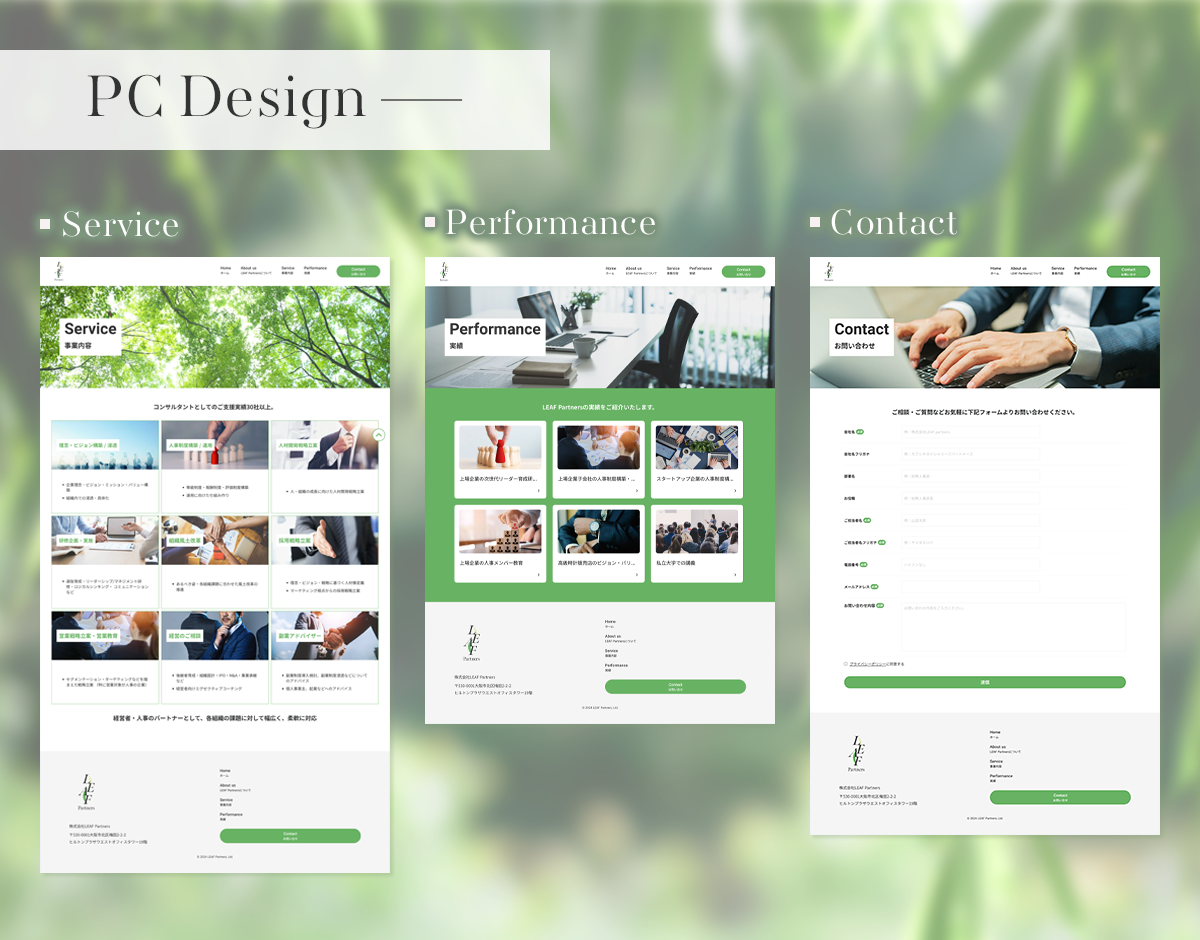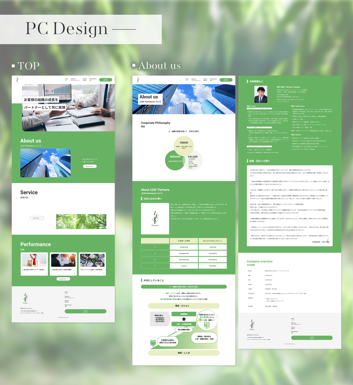 LEAF partners様コーポレートサイト制作および、ロゴ制作や名刺、PPTテンプレなどをトータルで対応させていただきました。
