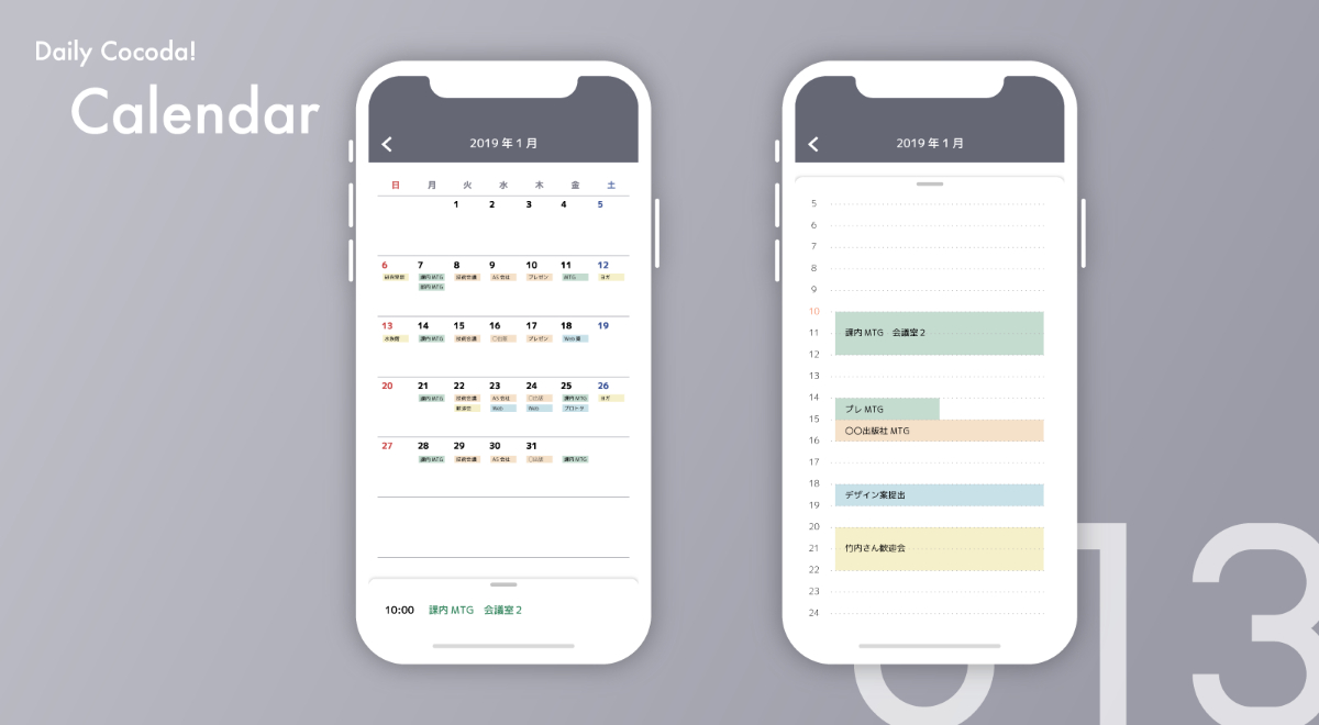 コンセプト:月ごとの表示画面で、予定をパッと確認できるカレンダー