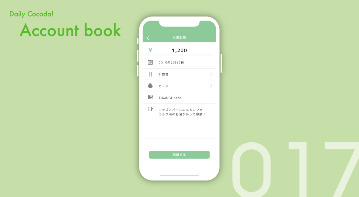 入力の抵抗を減らすため、柔らかなグリーンを使用しました!