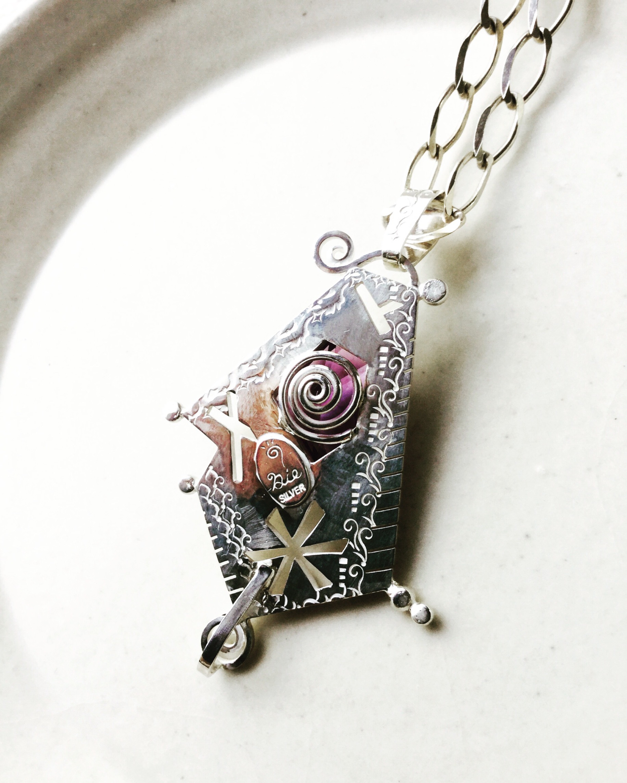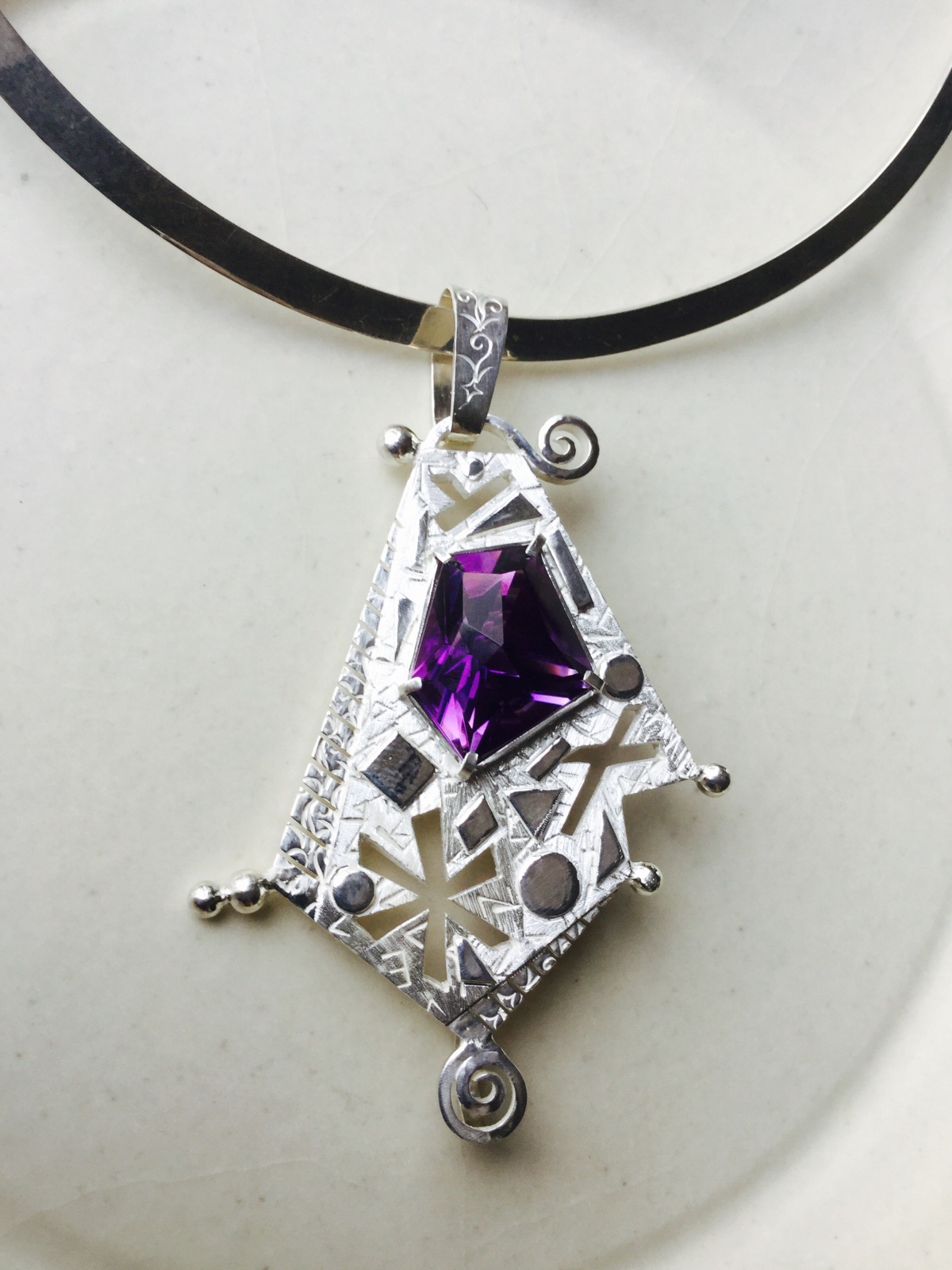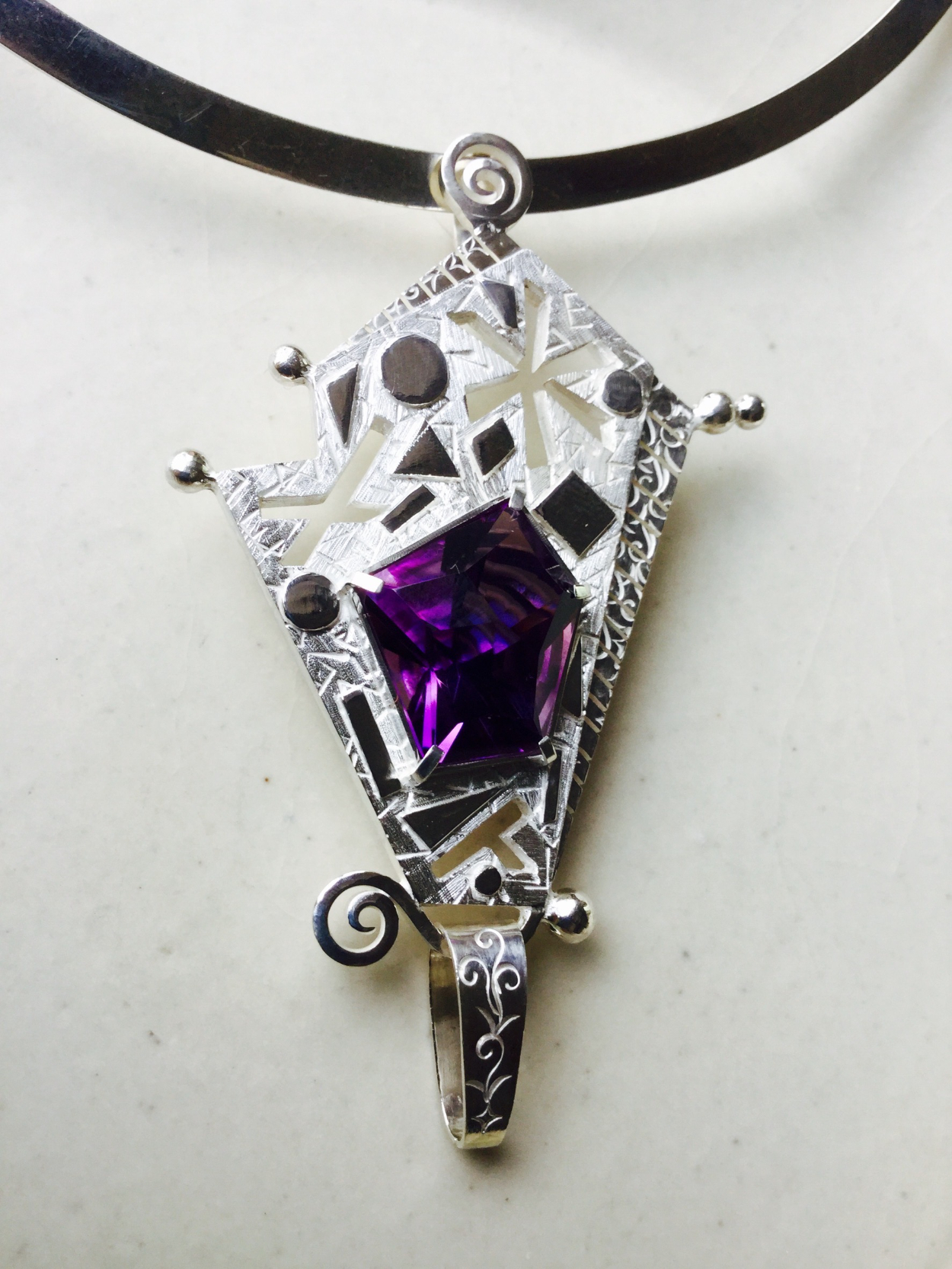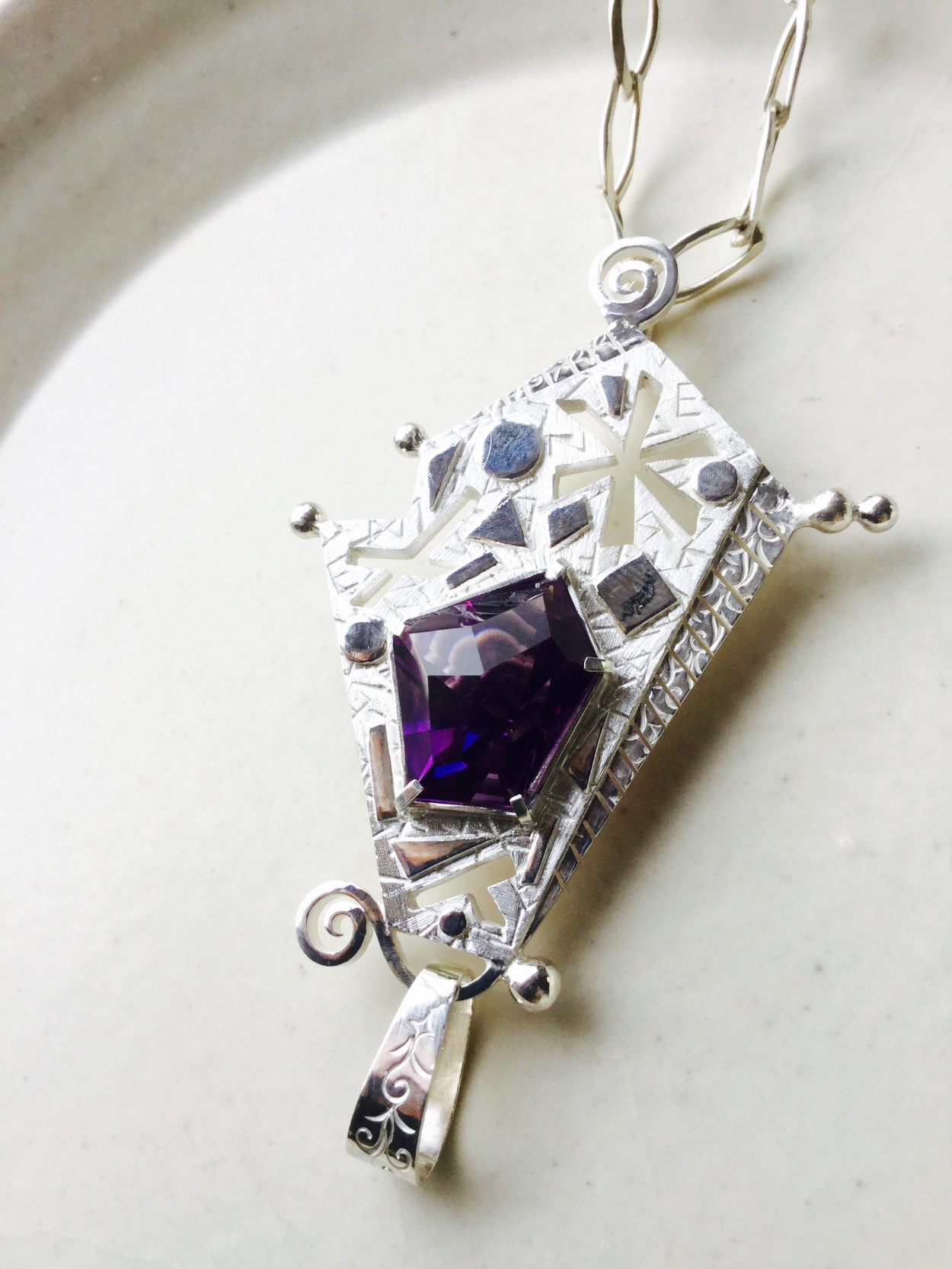 [五角形アメシスト] Simpatica.rie Jewelry Artist OVERVIEW Order Pendant: 素材:SV950/ 2WAYデザイン アメシスト持ち込み/五角形変形カット YEAR 2017 上下どちらにも使える2WAYデザインですが・・・裏面を入れると3WAY仕様になります