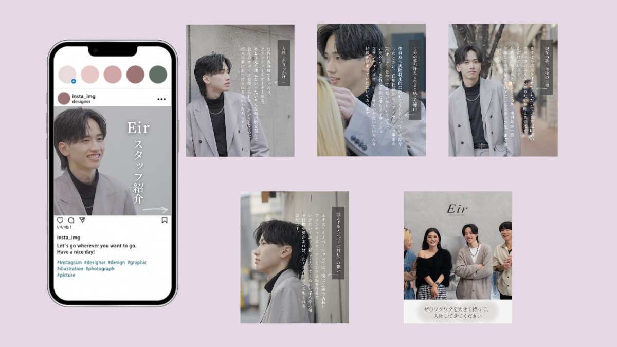 関西を中心に29店舗展開する美容室「Eir」様のSNS投稿用画像を制作しました。