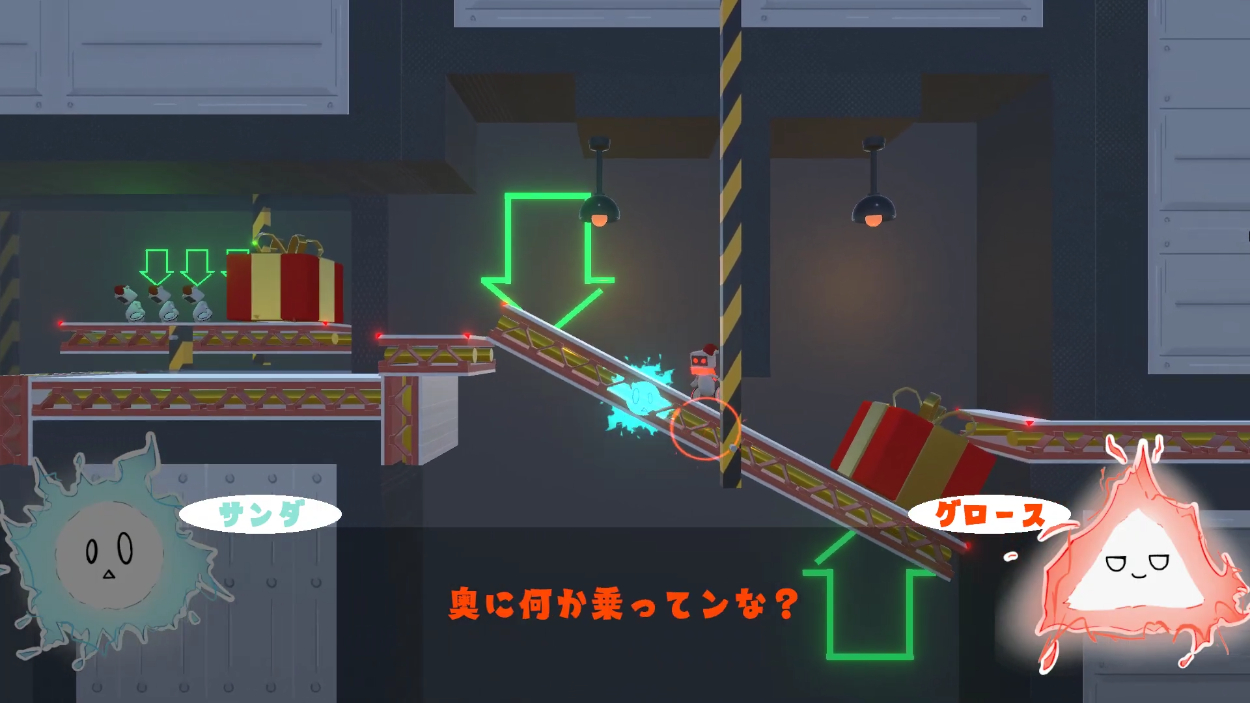 プレゼント製造装置の暴走を止めるべく、工場の中を進んでいく──