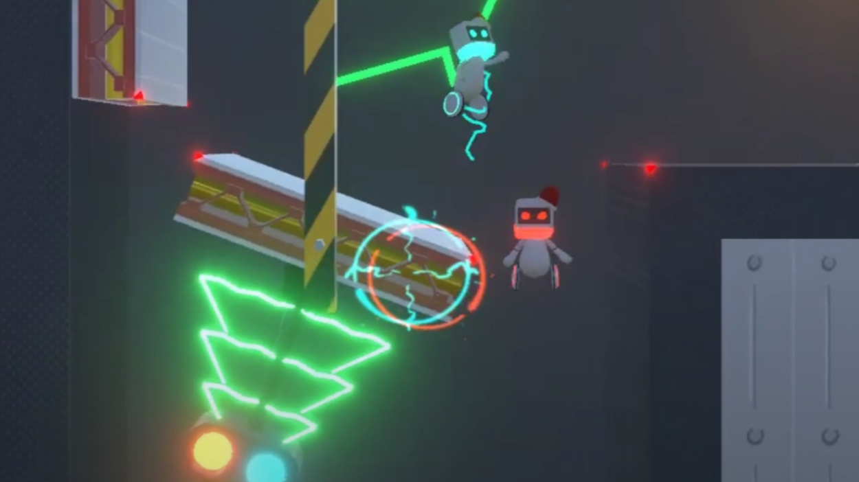 このゲームが2人プレイ専用であることには重要な意味があります。「電気」と「ロボット」、2人のプレイヤーがそれぞれ異なる役割を担うことで先に進めるようなギミックがいくつも登場します!