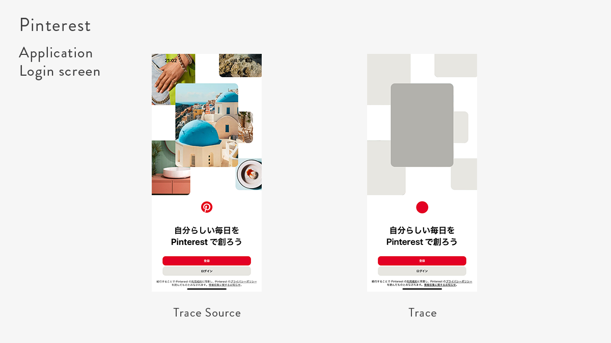 【UIトレース】Pinterestログイン画面 𝘬𝘺𝘰𝘬𝘰 デザイナー OVERVIEW Pinterestアプリのログイン画面をトレースしました。 制作時間:約30分 使用ツール:Adobe XD 機種:iPhone 14 Plus YEAR 2025 Adobe XDの練習としてトレースしました。