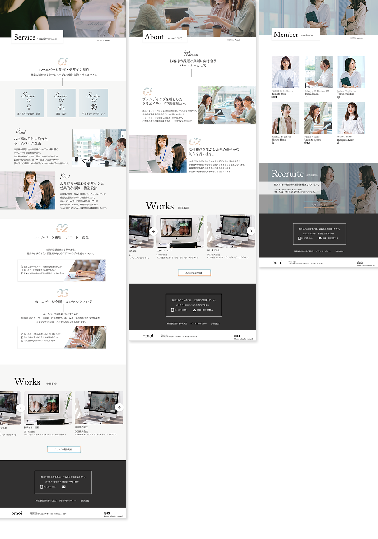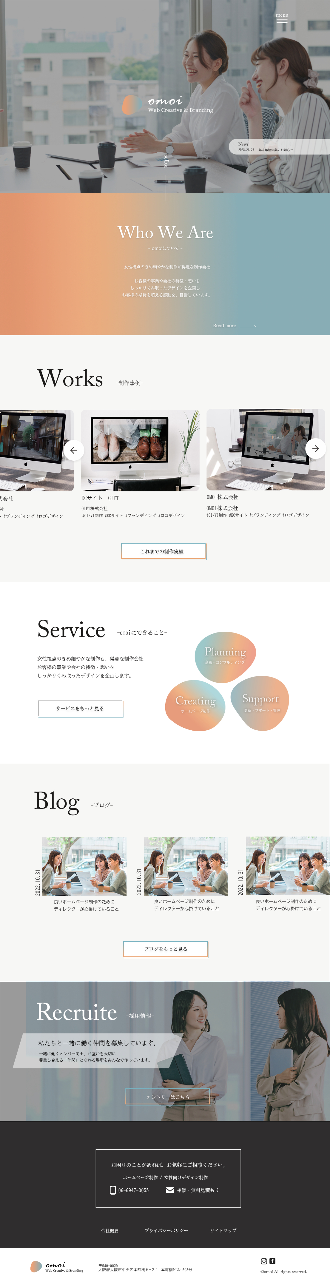 職業訓練校にて制作した課題のWEBサイトです。架空のWEB制作会社『OMOI』のサイトを制作いたしました。