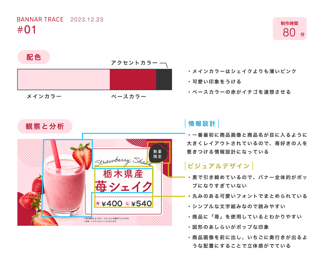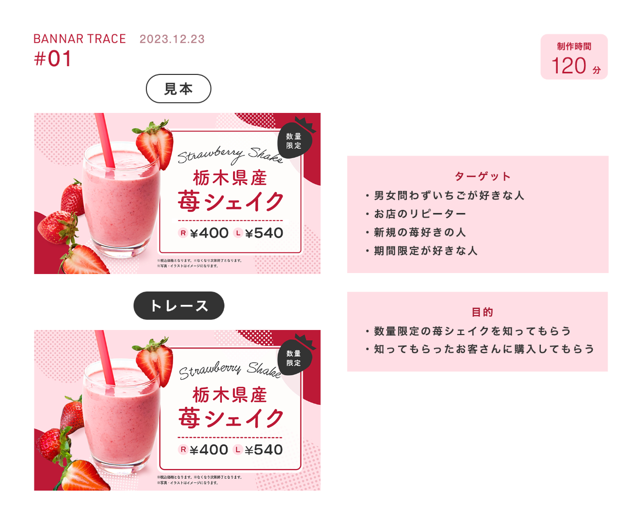 バナートレース yuuri Webデザイナー ■バナーの目的、ターゲット■バナー分析■学んだ点細かくバナーを観察すると発見が多くあり、学びが得られるバナーを制作する際、同じ見た目のものを作ることができても作る際に「効率良く作るにはどうすればいいのか」を考えて作るのが大切画像やバナー全体の光の当たり方に注目する