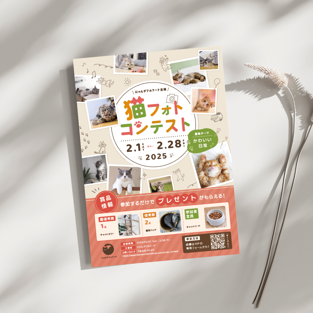 - フォトコンテストなのでぱっと見て写真のイベントと伝わるように、テーマに合わせた可愛い猫の写真をたくさん配置し構成しました。