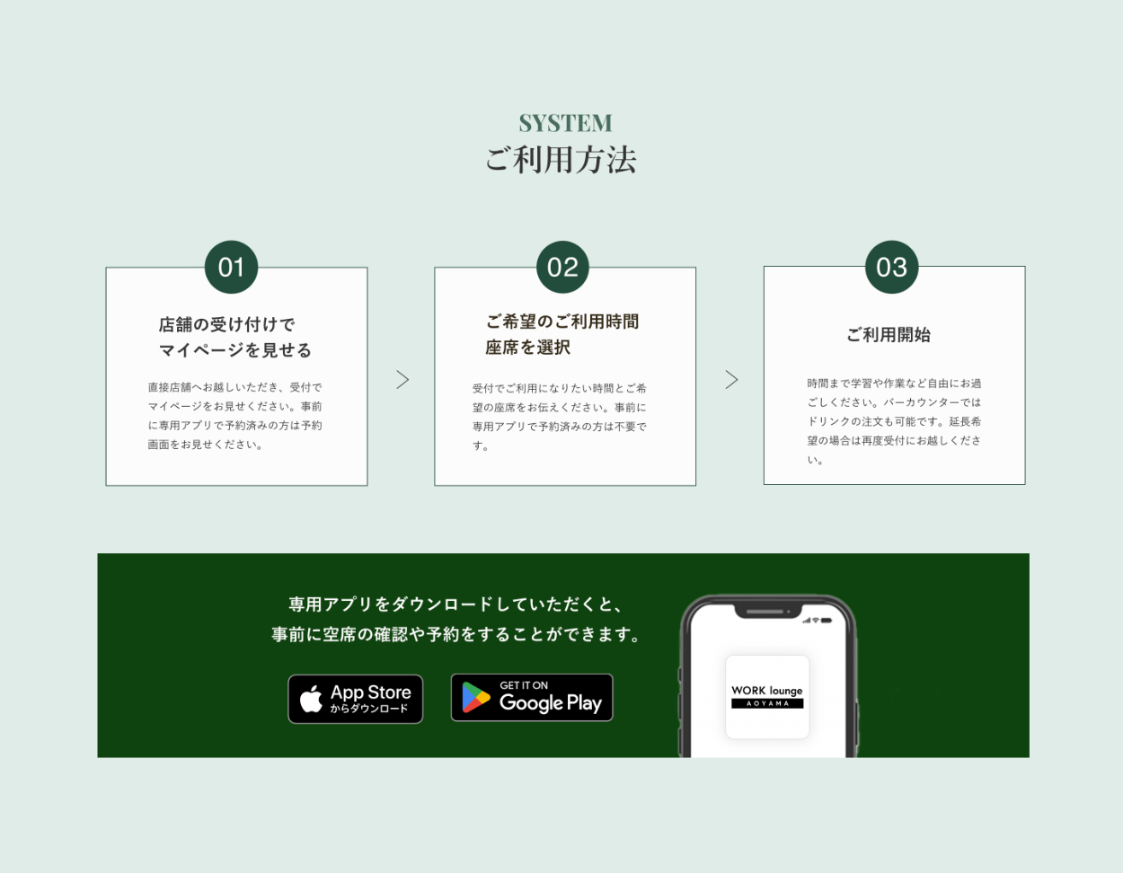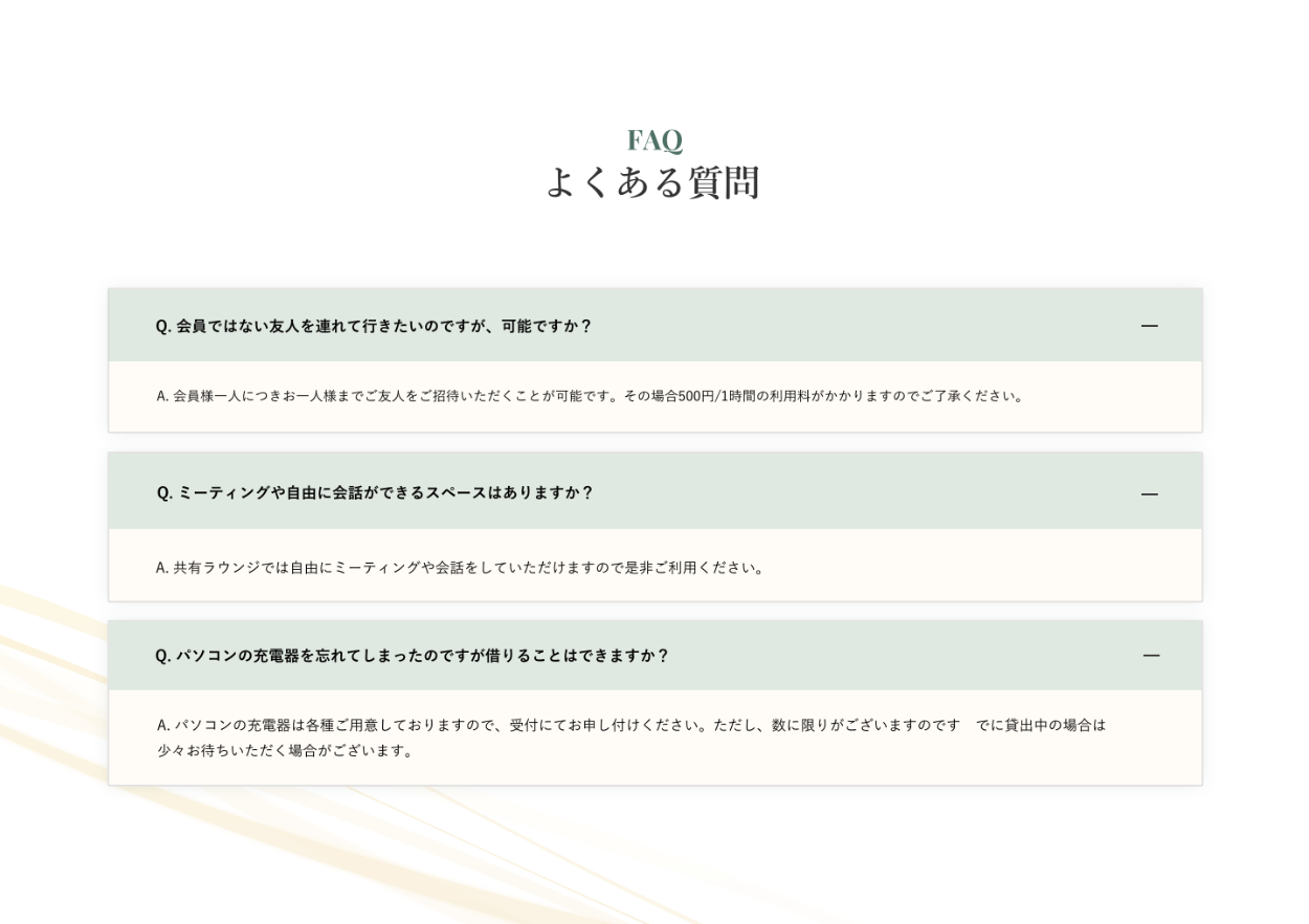 会員限定のカフェ&コワーキングスペースをオープンすることとなったため、利用方法やアクセス情報を載せたWebサイトを制作したいなと思っている。
