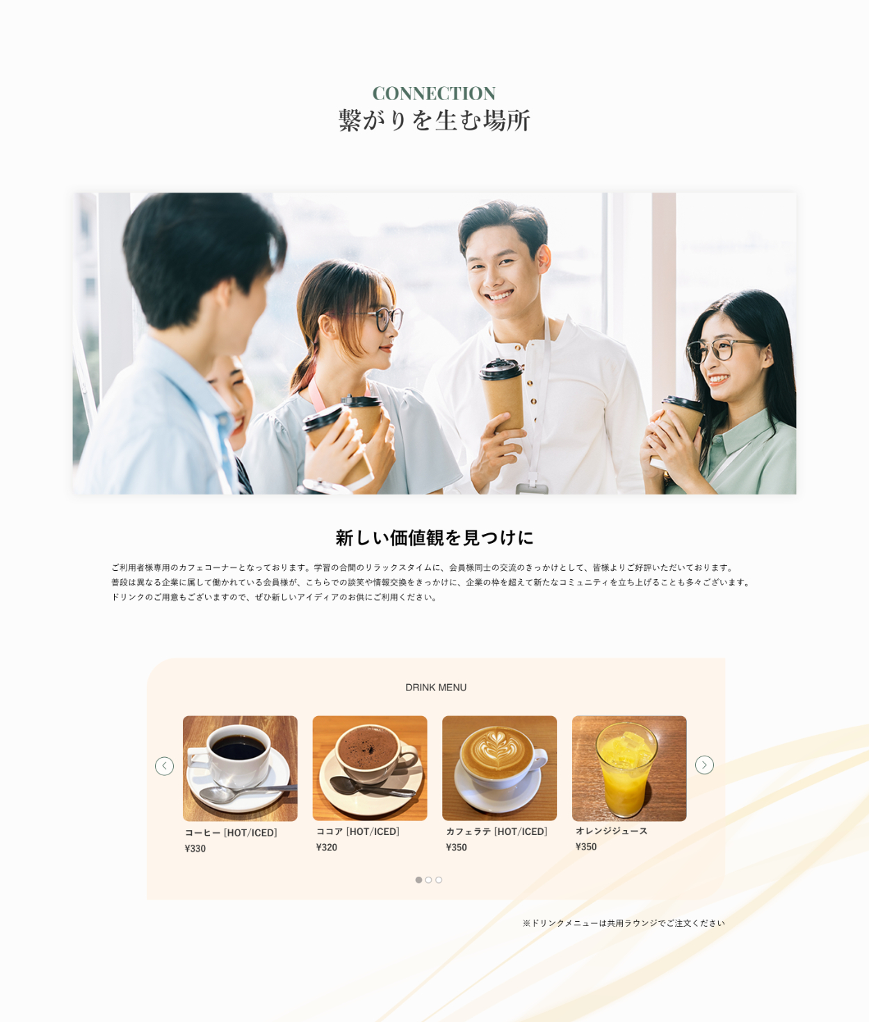 【自主制作】会員専用カフェ&コワーキングスペースのLPデザイン