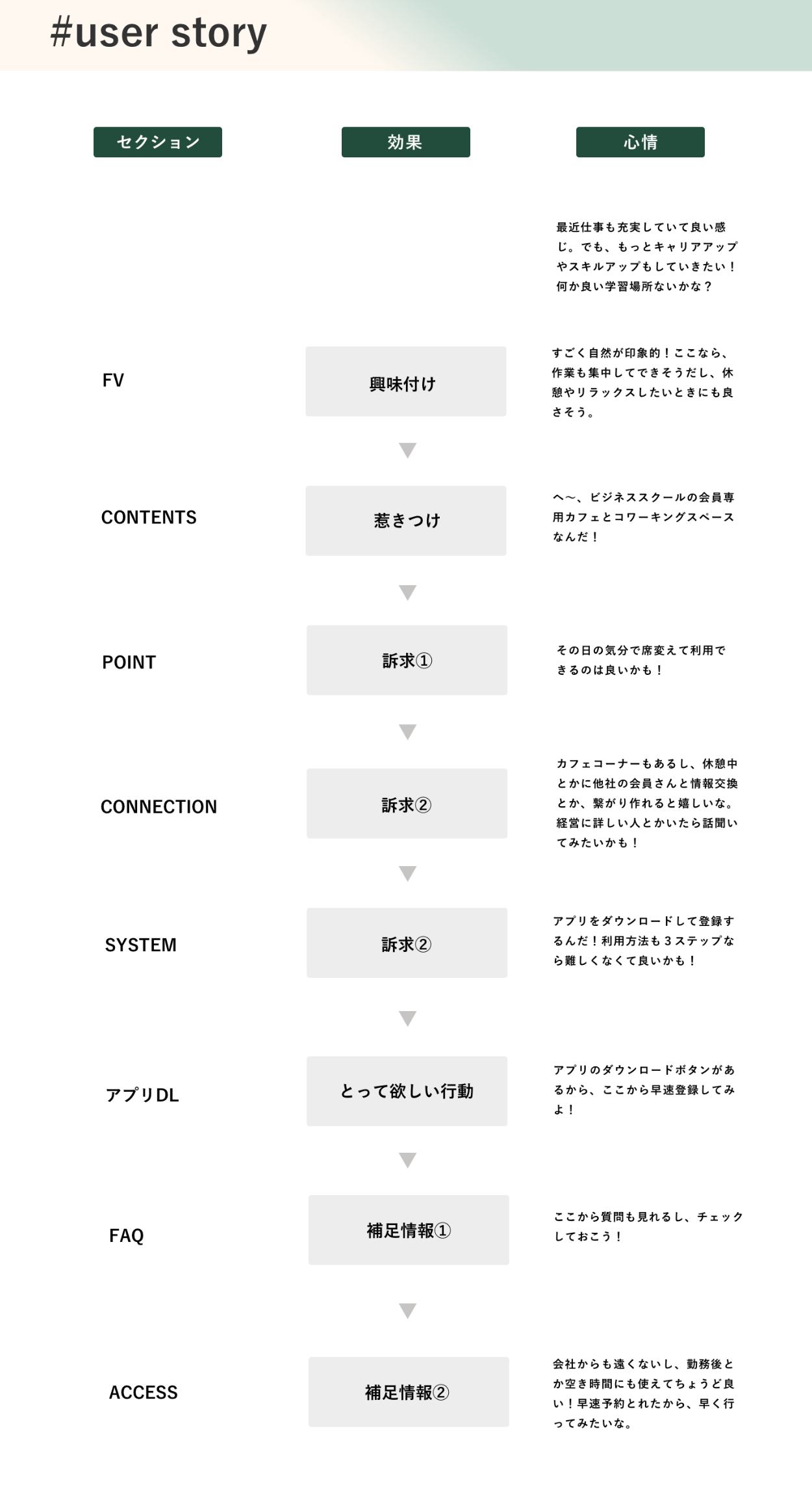 ペルソナのニーズやゴールに近づける要素として、セクションを追加提案。
