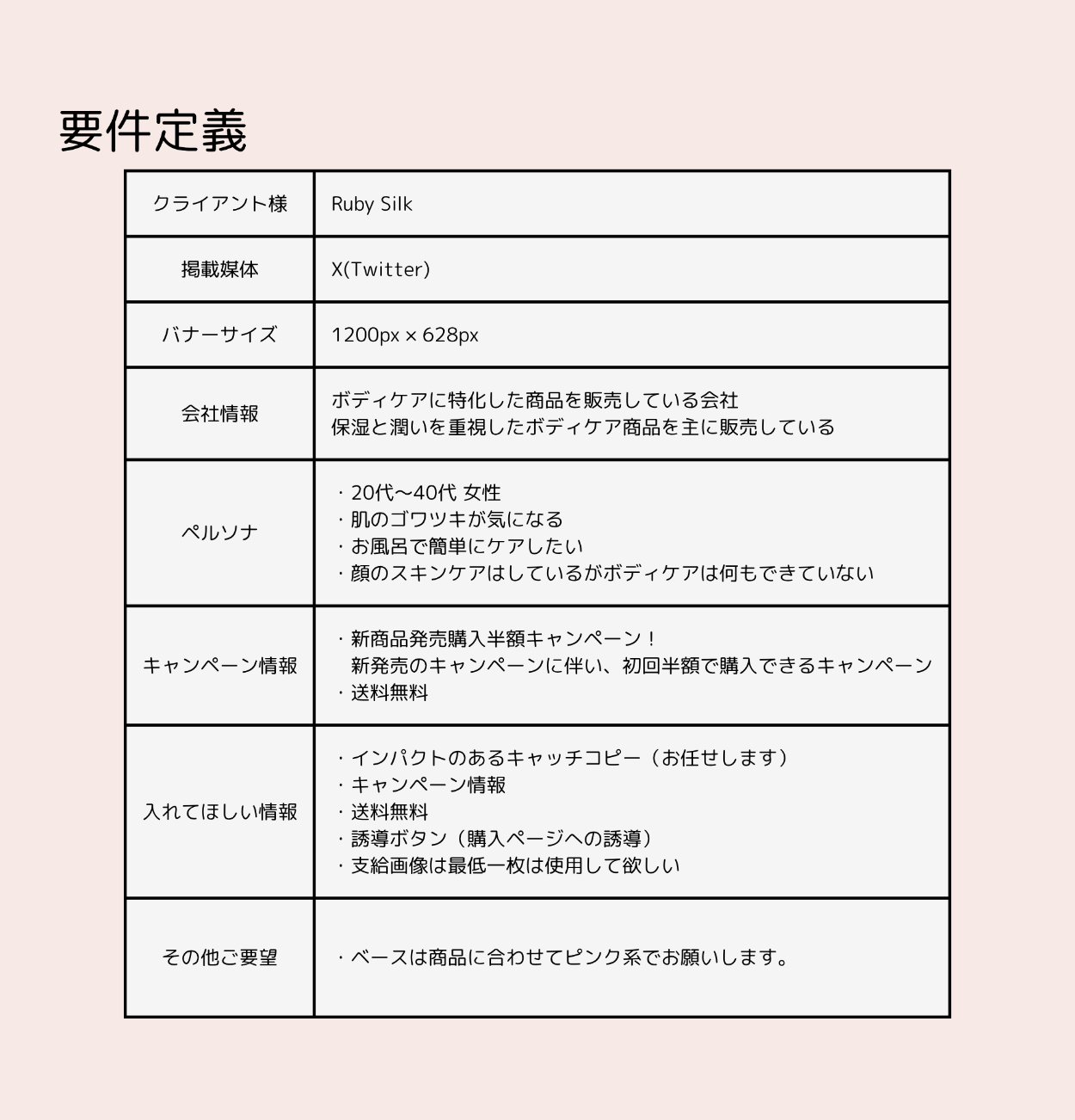 【架空案件】ボディスクラブの広告バナー ザウルスデザインラボ フリーランスwebデザイナー OVERVIEW Hertechの課題にて、架空案件として料理教室のバナー制作を行いました。 YEAR 2025 使用ツール:Canva作製時間 :4時間