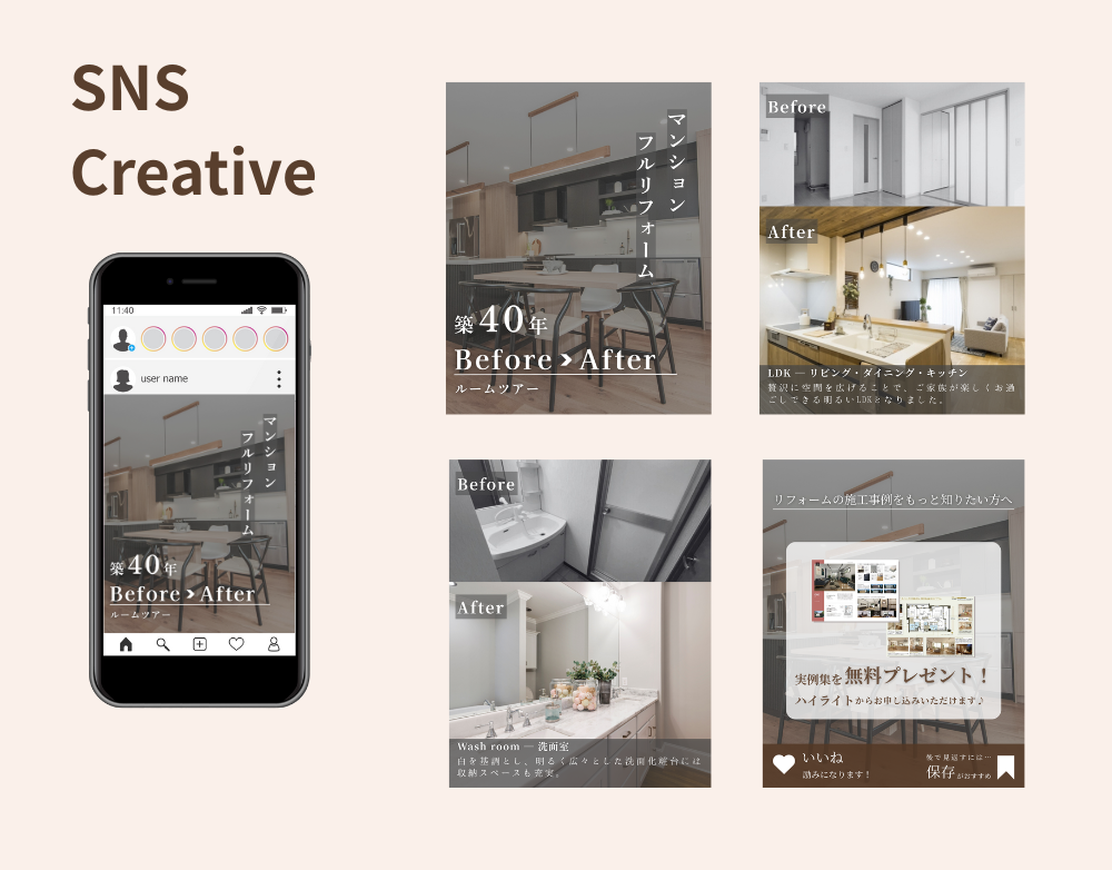 【不動産マンションリフォームの投稿画像制作】