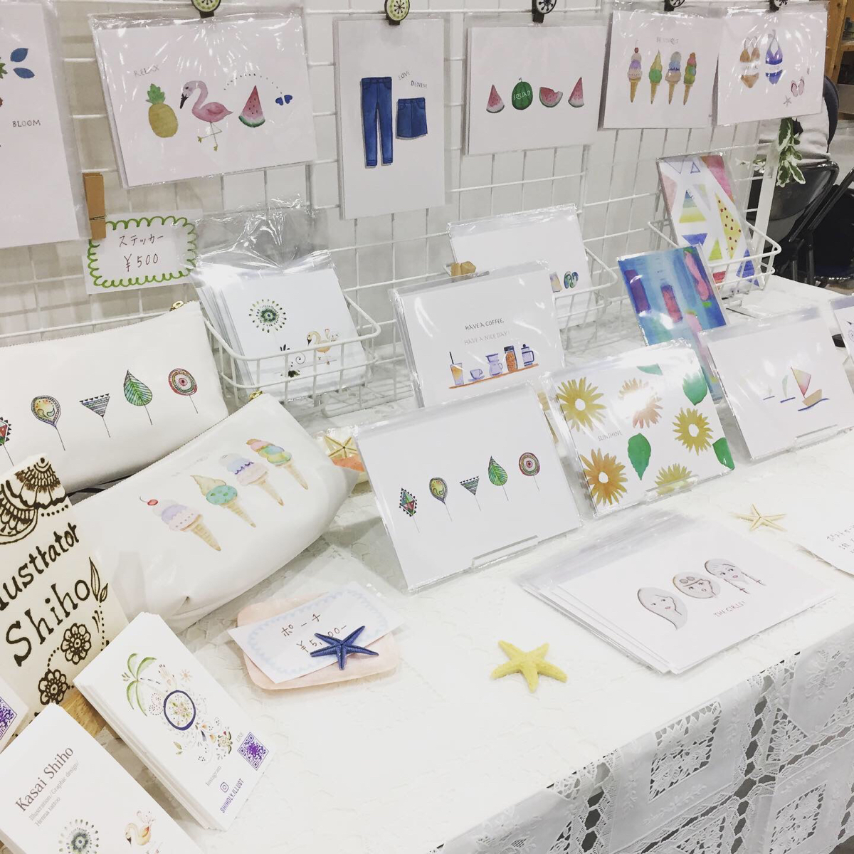 真夏のデザインフェスタ2019 Shiho イラストレーター/ヘナタトゥーアーティスト OVERVIEW 毎年行われるデザインフェスタに初出店。 夏にちなんだ水彩イラストのポストカード、ステッカー、小物を販売しました🏝初出店でしたが、沢山の方が足を止めて下さりました。お話もできて楽しかったです!ありがとうございました!