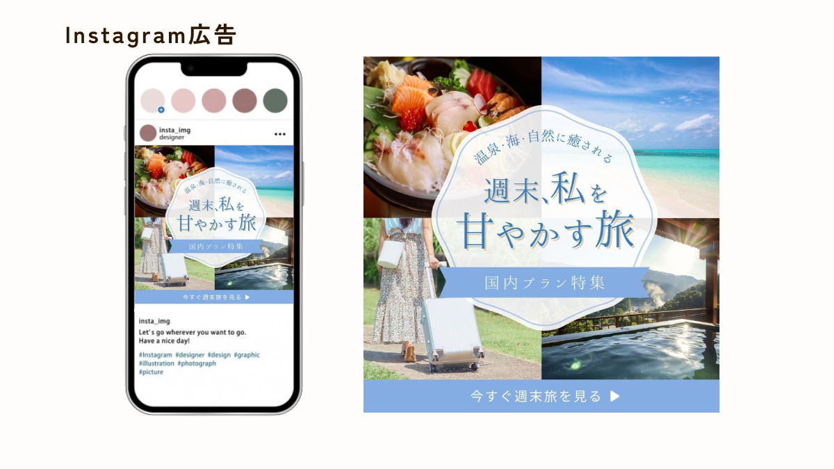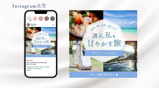20代後半~30代前半の女性向けに、旅行会社が出すInstagramの広告バナーを想定して制作しました。※自主制作※