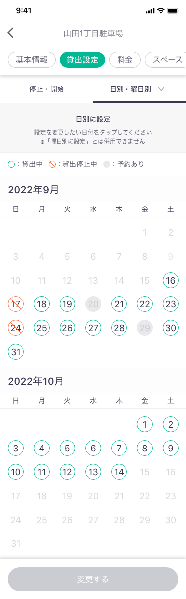 個人オーナーの駐車場は常時貸出ではなく「来客時には貸出を停止したい」「周辺施設でイベントが開催される日のみ貸し出したい」など、さまざまなケースが想定されます。