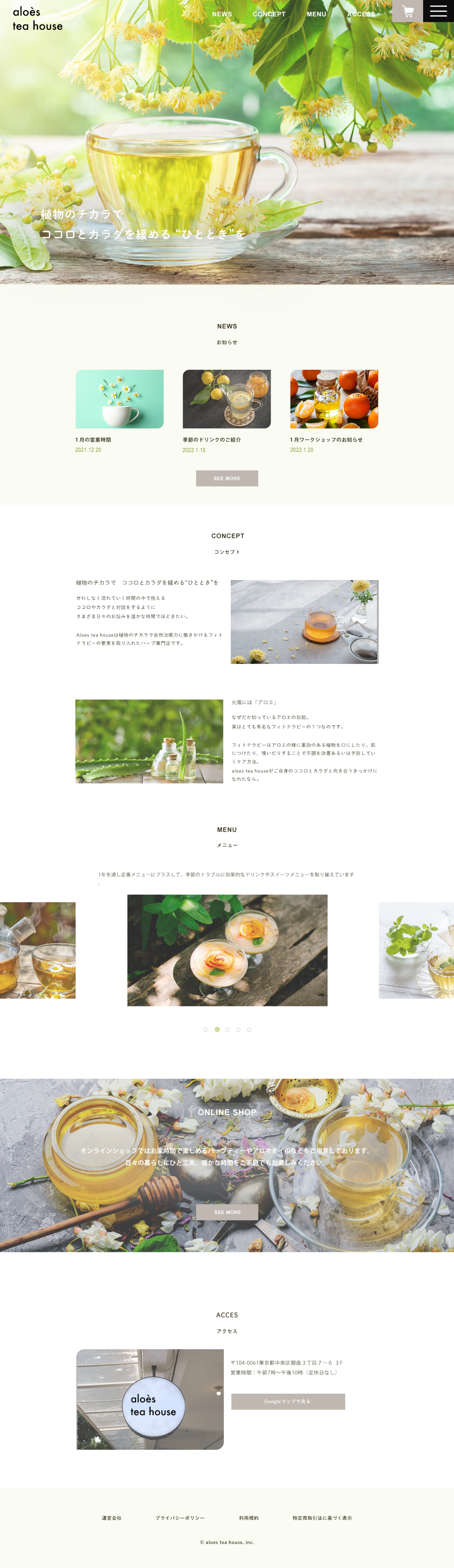 ・フィトテラピー(植物療法)をテーマにしたカフェのwebページ