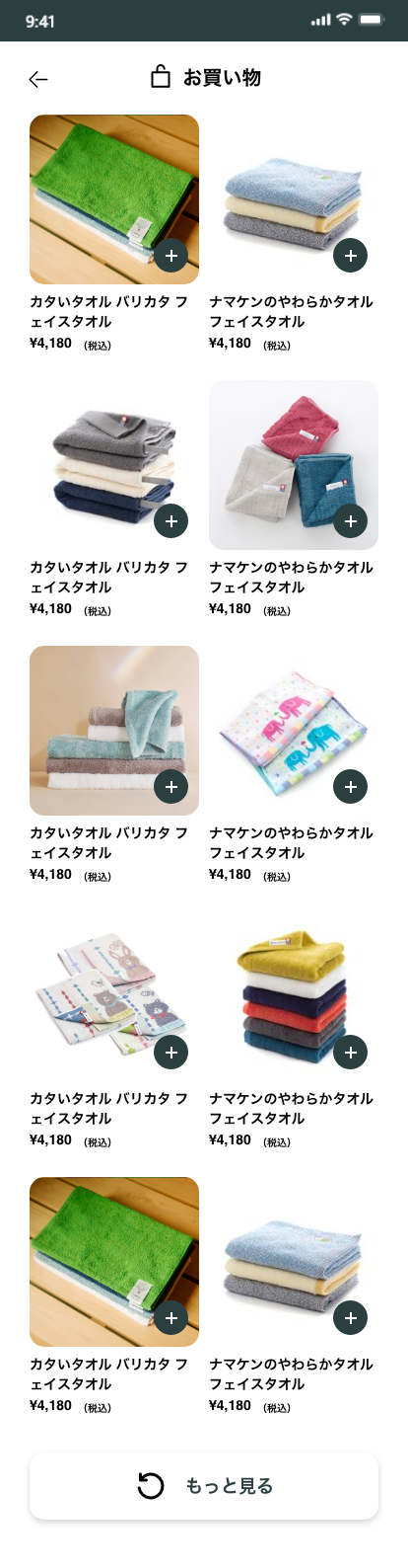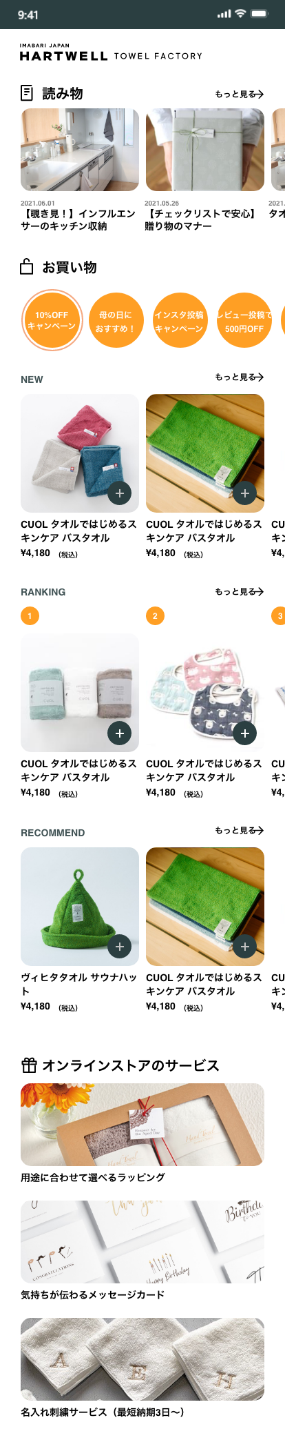 ・お買い物に役立つコンテンツを最初に配置し、アプリからの継続的な購入を促進。