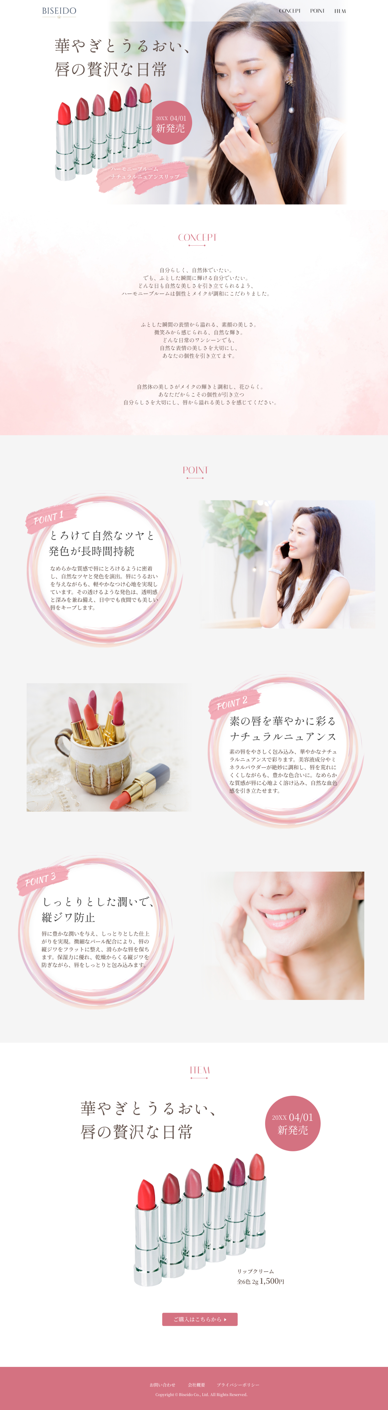 - キャッチコピーは「華やぎとうるおい、唇と贅沢な日常」であること。