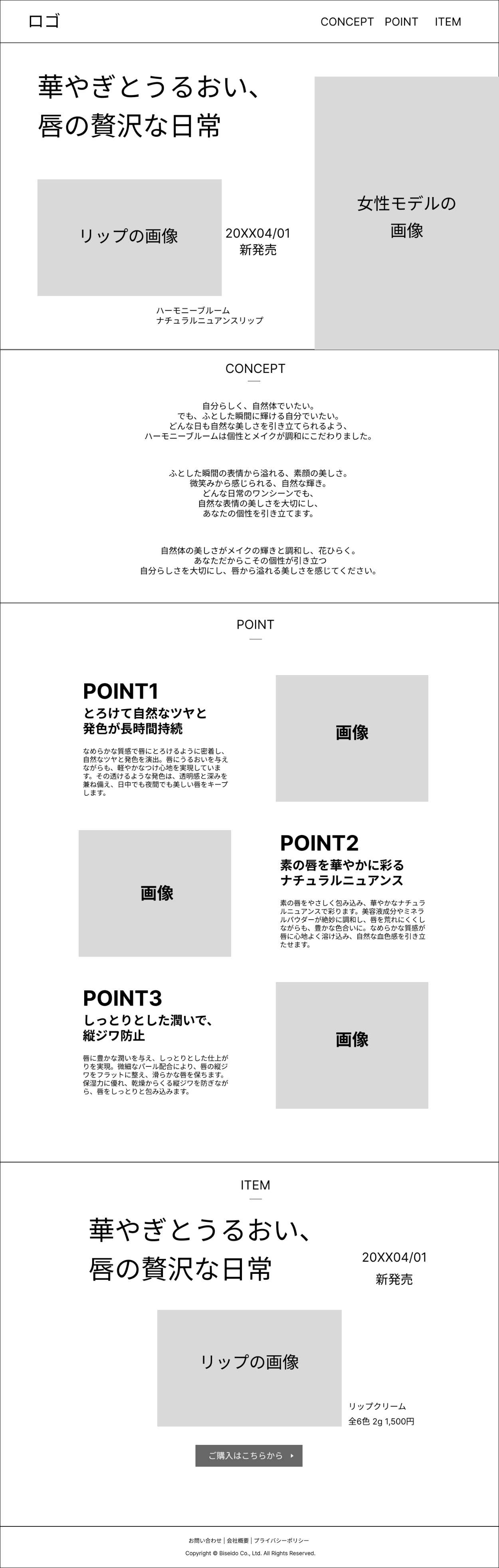 - 課題で作成したリップクリームバナーをタップしたときに移るWebページを作成すること。