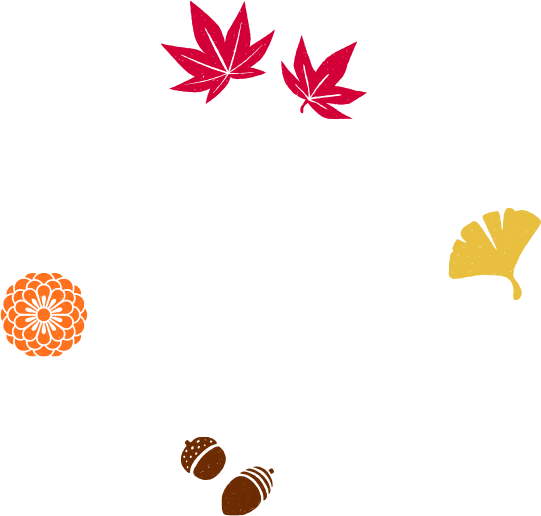 モミジやイチョウといった秋らしいあしらいを配置し、
