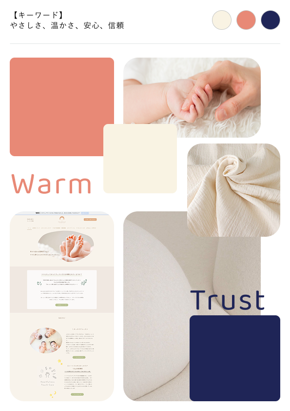 要件定義 / ペルソナ設計 / ワイヤーフレーム / ムードボード / デザインカンプ / コーディング / サーバーアップ