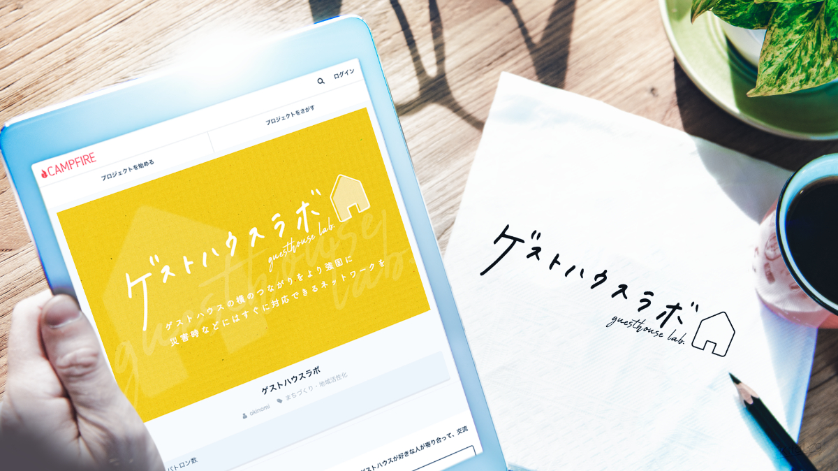 CAMPFIRE にて「ゲストハウス好きがワクワク出来るサロン」をコンセプトに活動するゲストハウスラボ様のロゴとアイキャッチを制作しました。