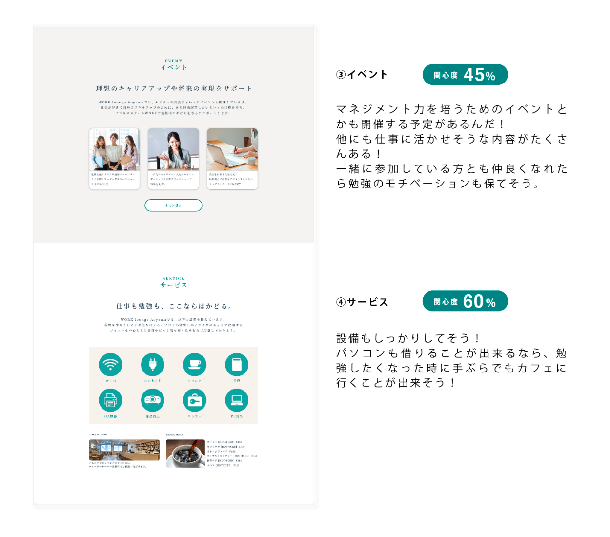 カフェ&コワーキングスペースのLP制作 情報設計/デザイン