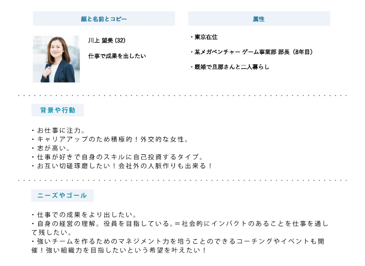 ・メインターゲット→20〜30代のビジネス感度の高い女性