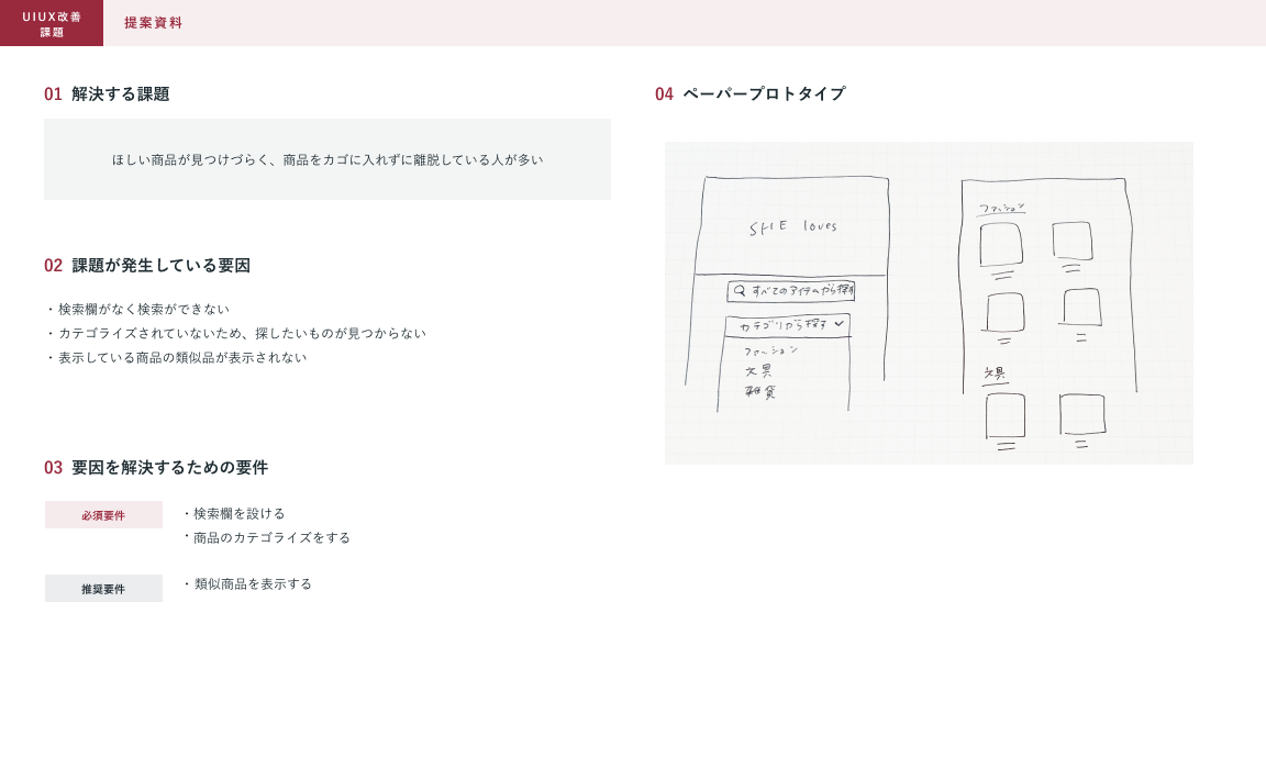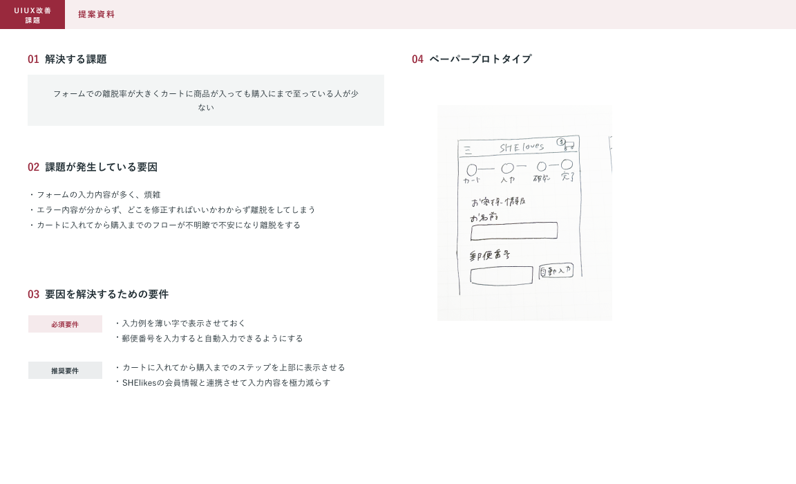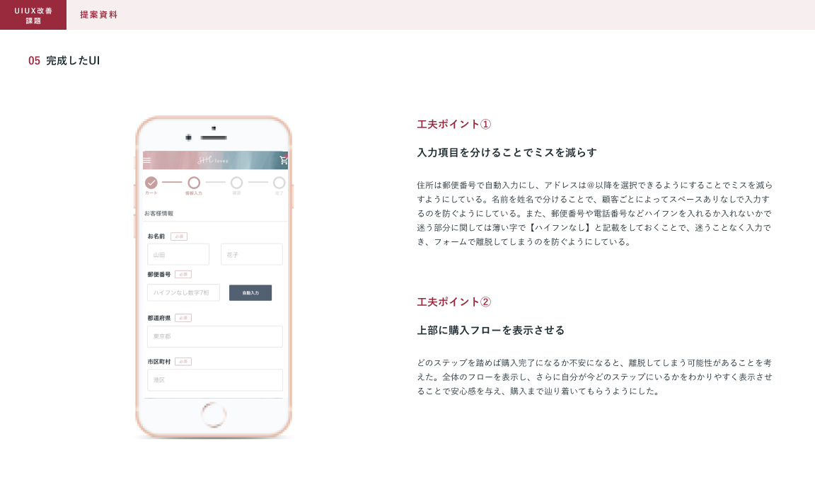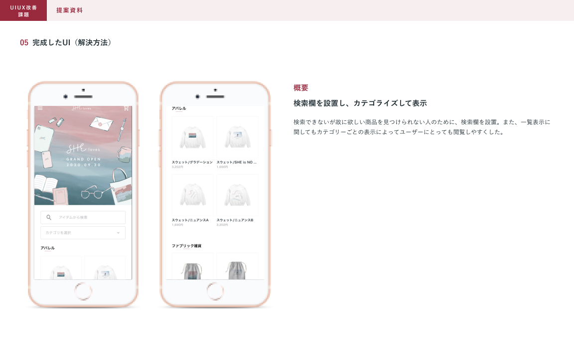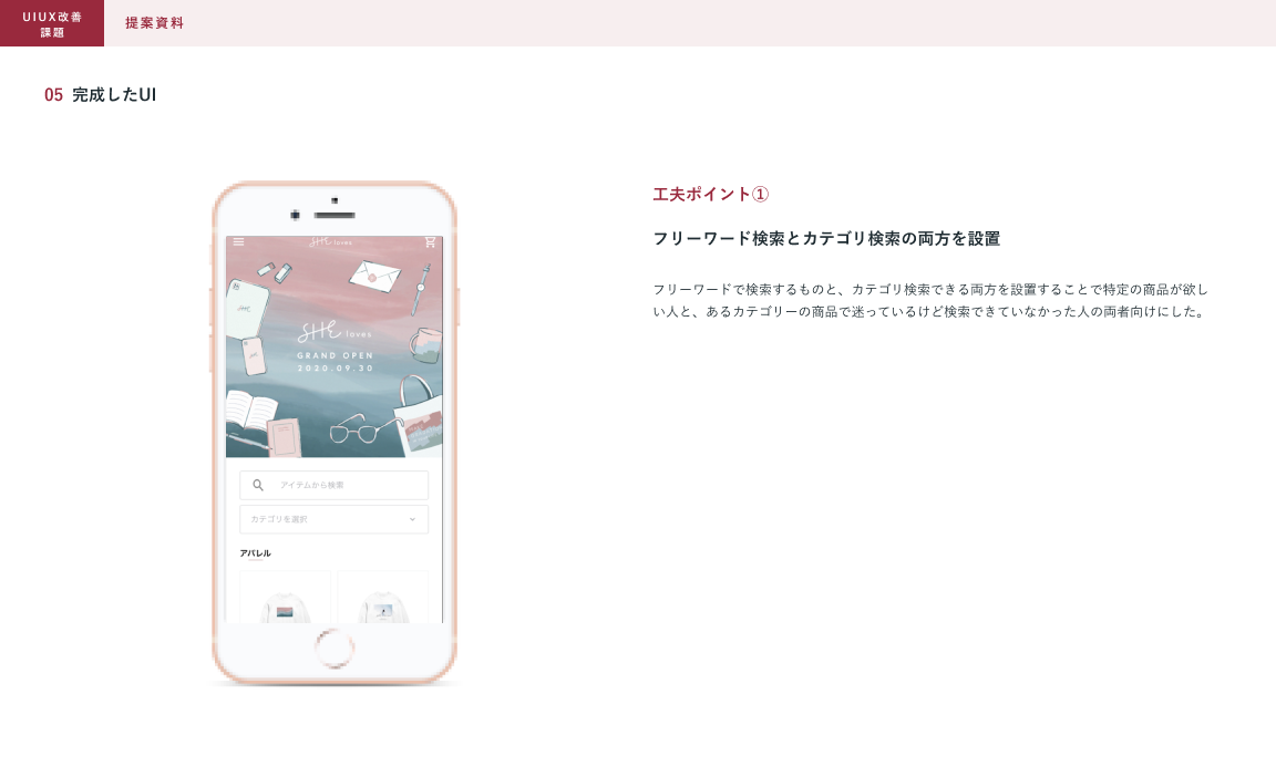 SHElikes MULTI CREATOR COURSE Designerの課題で、架空クライアントが抱える課題を解決するため、ECサイトのUI /UX改善提案に取り組みました。