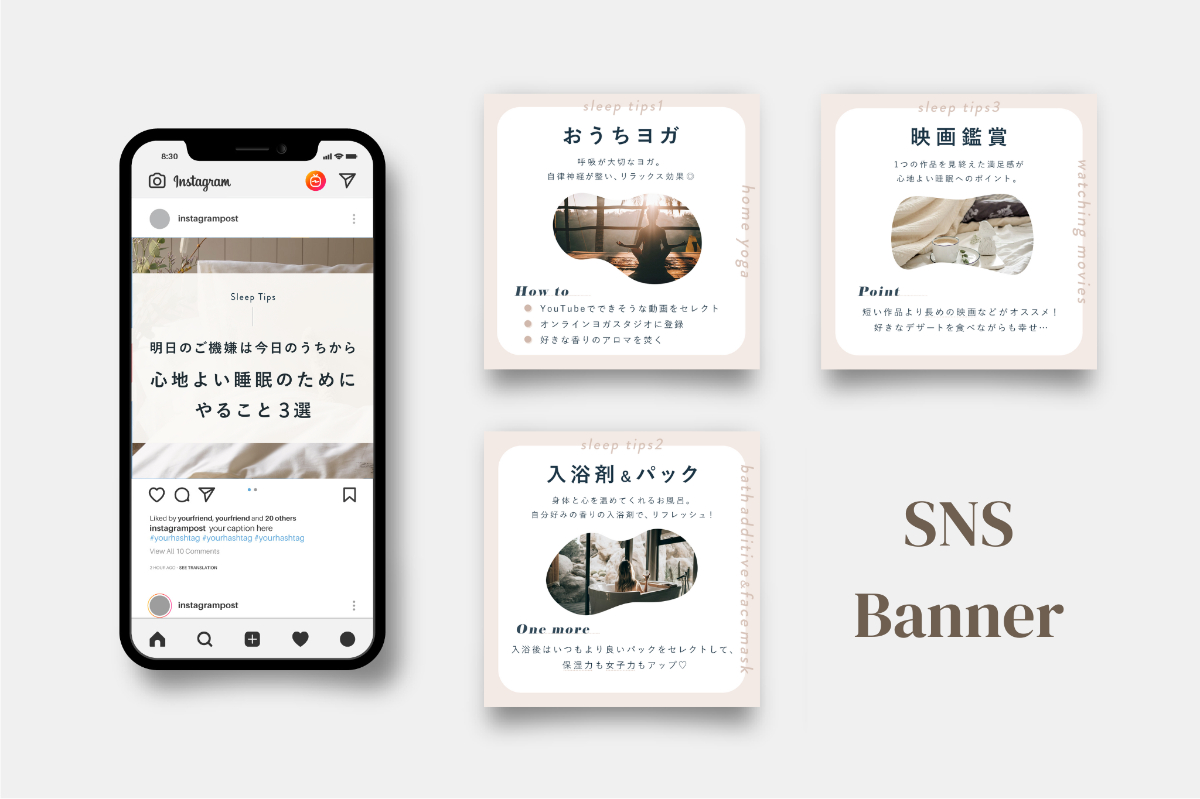 WEBスクールSHElikes WEBデザインコースの実技試験制作になります。テーマは決まったものとなり、内容のデザイン3枚を作成しました。 [製作期間:1日 / 制作時間:3時間 / 制作ツール:Photoshop]