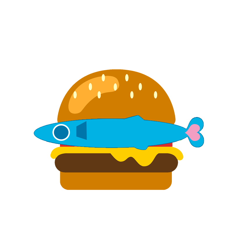 瀬戸内名物さわらハンバーガーボタン | まるで海外のような風景があることを表現。 ハワイを想起させるビビット系の色を使用。 女性向けに丸くやさしいフォルム ・尾っぽのハートで地方の“情”を表現
