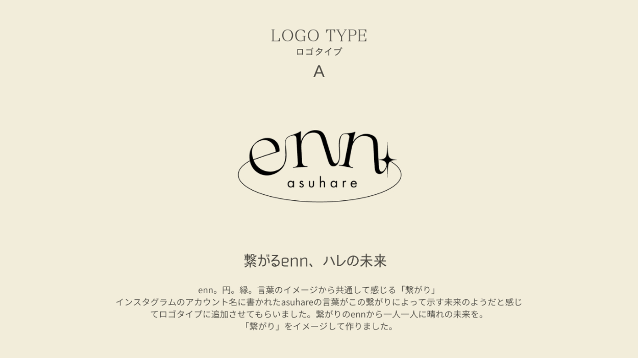 インスタグラムのアカウント名に書かれたasuhareの言葉がこの繋がりによって示す未来のようだと感じてロゴタイプに追加させてもらいました。