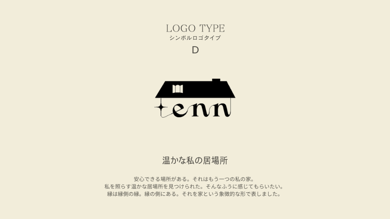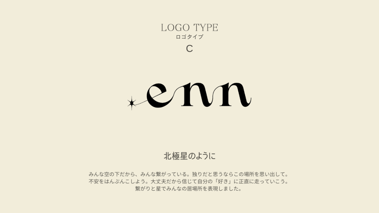 ・さらにクライアントのインスタグラムのアカウントに現在使用している自作のロゴが記載されていたので、想いを汲み取りそのロゴに使用されている書体に似たものを使用して文字同士を細い強弱のある線で繋ぐように線を描き「繋がり」を表現しました。
