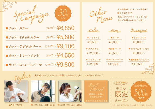 スタイリストは皆モデル御用達の有名店で腕を磨いた実力派。