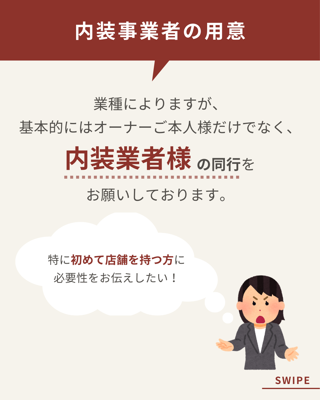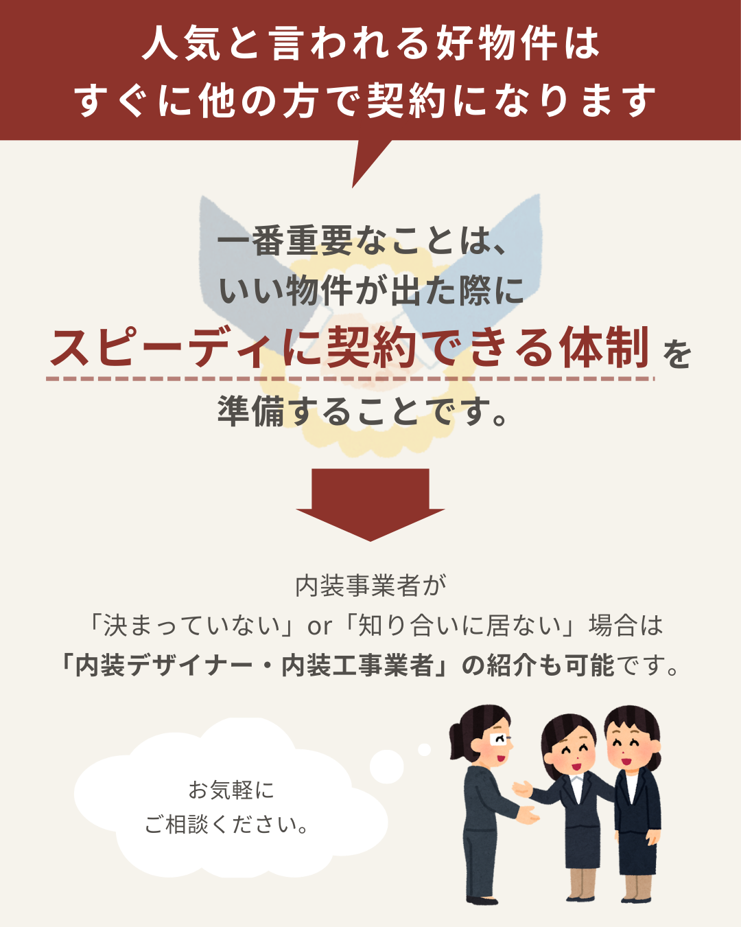- 「内装業者の同行」を一番目立たせる為に文字サイズの強弱を付け、文字の色を変更しました。