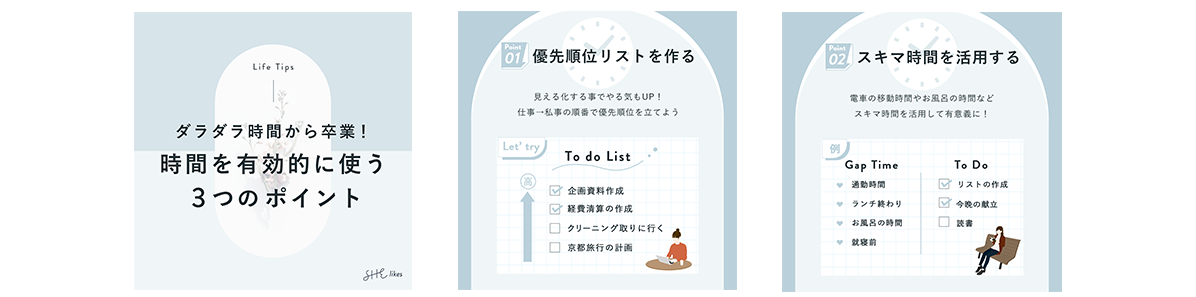 【実案件】SHE株式会社様 『時間を有効に活用した方向け』SNSクリエイティブコンペ採用バナー