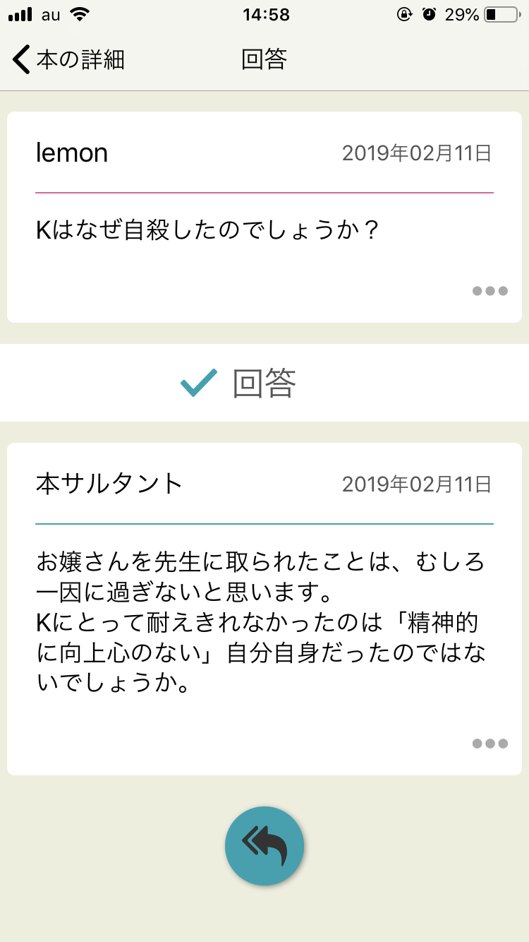 配色の根拠は、「出発点」である質問は少し華やかに、「着地点」である回答は落ち着いた色であるべきだからです。
